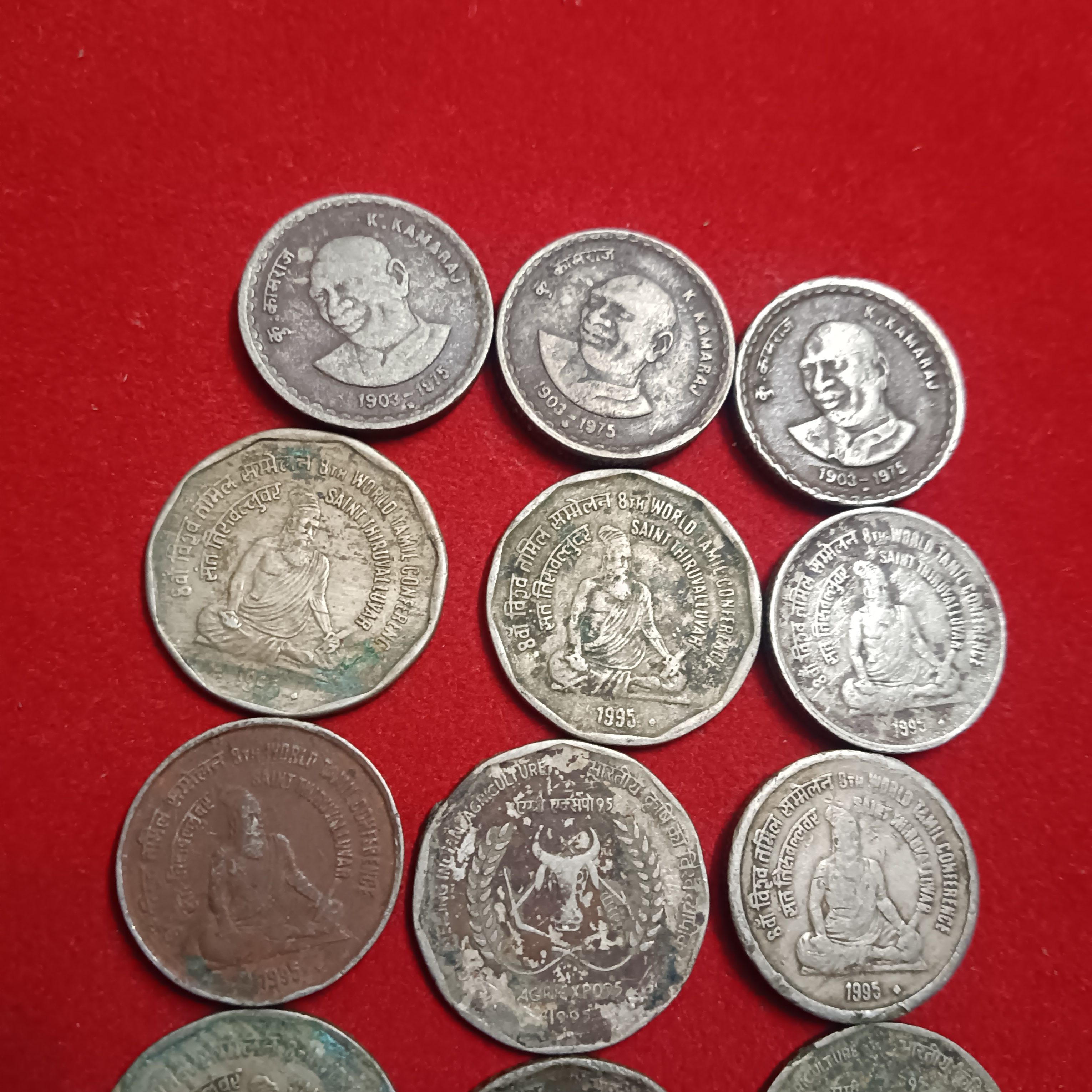 Add a touch of history to your collection with this exclusive Scare Republic India Coins Loot set, featuring a rare assortment of 15 pieces from various denominations and commemorative themes. The collection includes 3 pieces of 5 Rs coins honoring Kamraj Hyderabad, 4 pieces of 2 Rs coins from the Tamil Conference, 3 pieces of 5 Rs coins also from the Tamil Conference, 2 pieces of 2 Rs coins celebrating Agriexpo, and 3 pieces of 2 Rs coins marking International Youth Year. Each coin encapsulates a piece of India’s cultural and historical significance, making this set a must-have for any serious collector or enthusiast. These coins are non-profit items offered at an unbeatable price, adding exceptional value to your collection. Don’t miss this opportunity to own a piece of India’s heritage in a unique and diverse coin set.