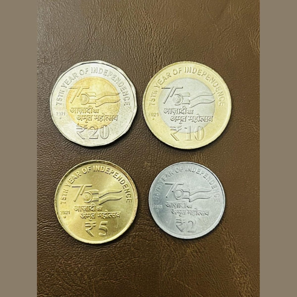 - Set of 4 coins 75 azadi ka amrit mahotsav with year 2021 rare. Sku 401