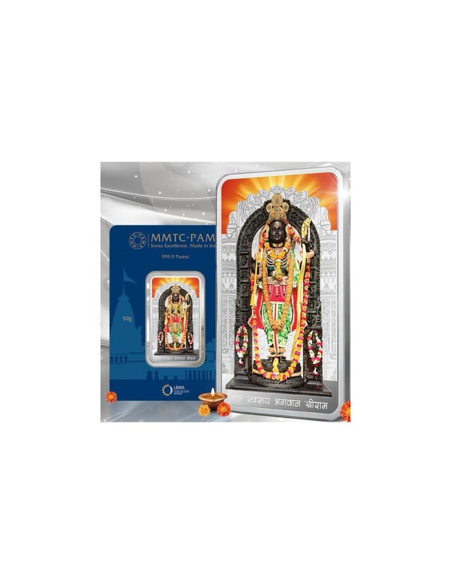 MMTC-PAMP’s Ram Lalla Silver bar embodies the essence of this sacred occasion, offering devotees a tangible symbol of their faith and devotion. Meticulously crafted to the highest standards on purest silver with 99.99+% purity, customers can cherish the authenticity and value of each bar. The Ram Lalla Silver Bar is a timeless symbol of devotion and spirituality, making it an ideal and cherished memento which can be passed down generations.