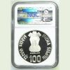 Silver Hundred Rupees Proof Coin of International Year of the Child of Bombay Mint.