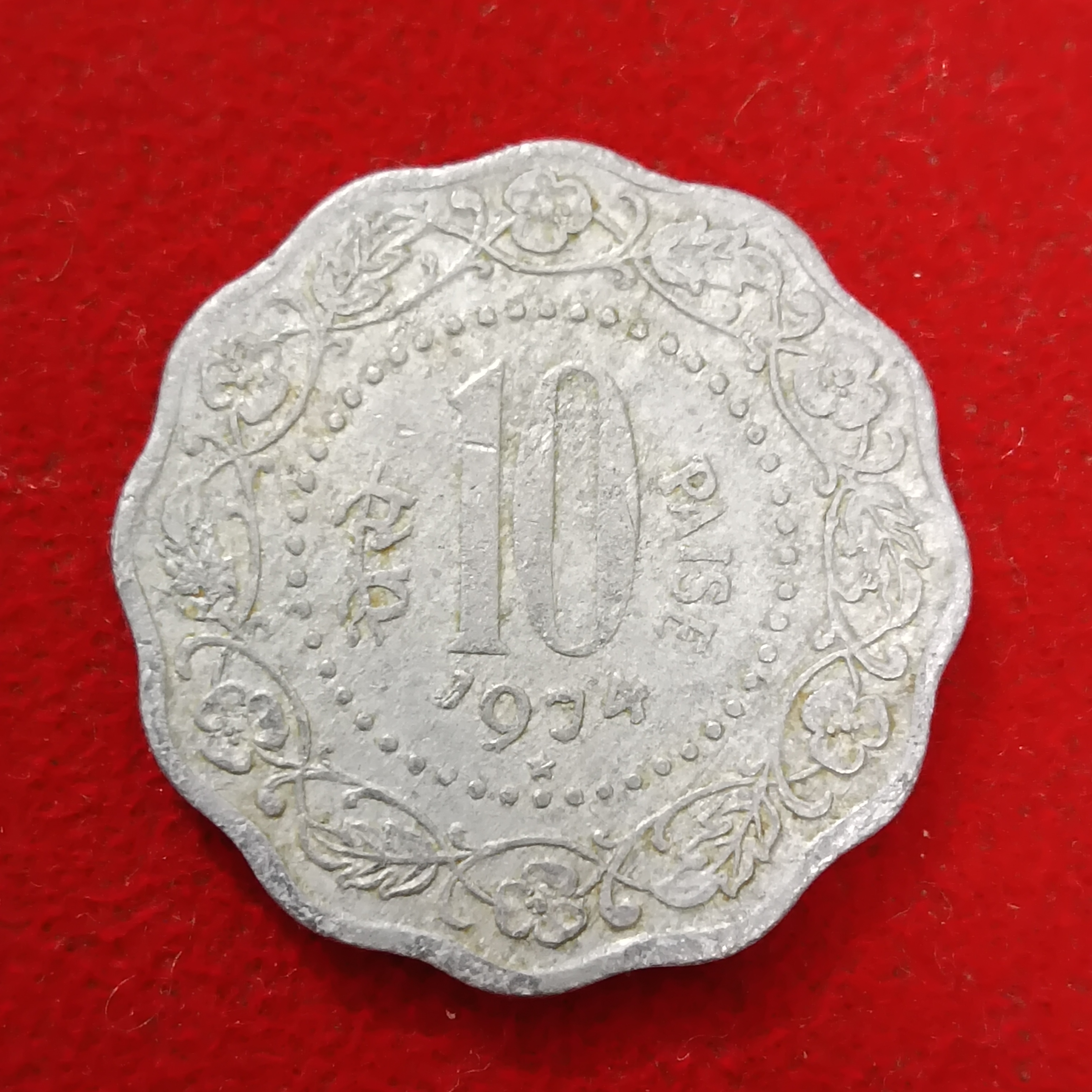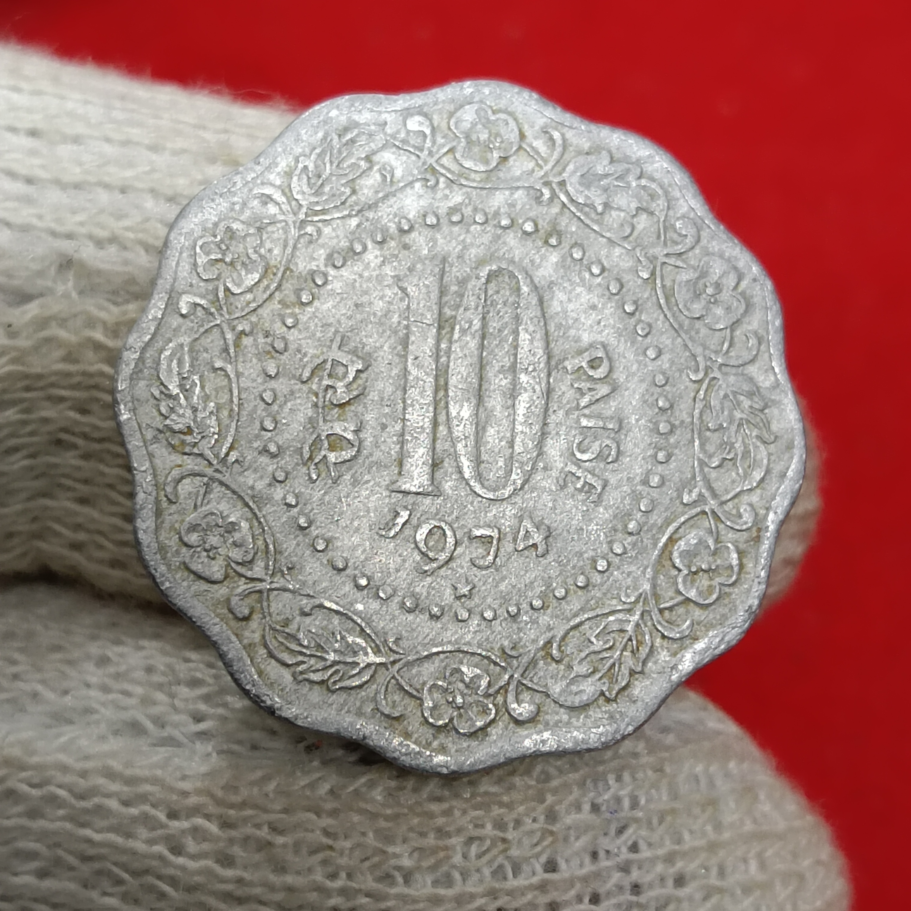 Ten Paise Rare Aluminium Coin 1974 Year Hyderabad Mint Good Condition Republic of India
