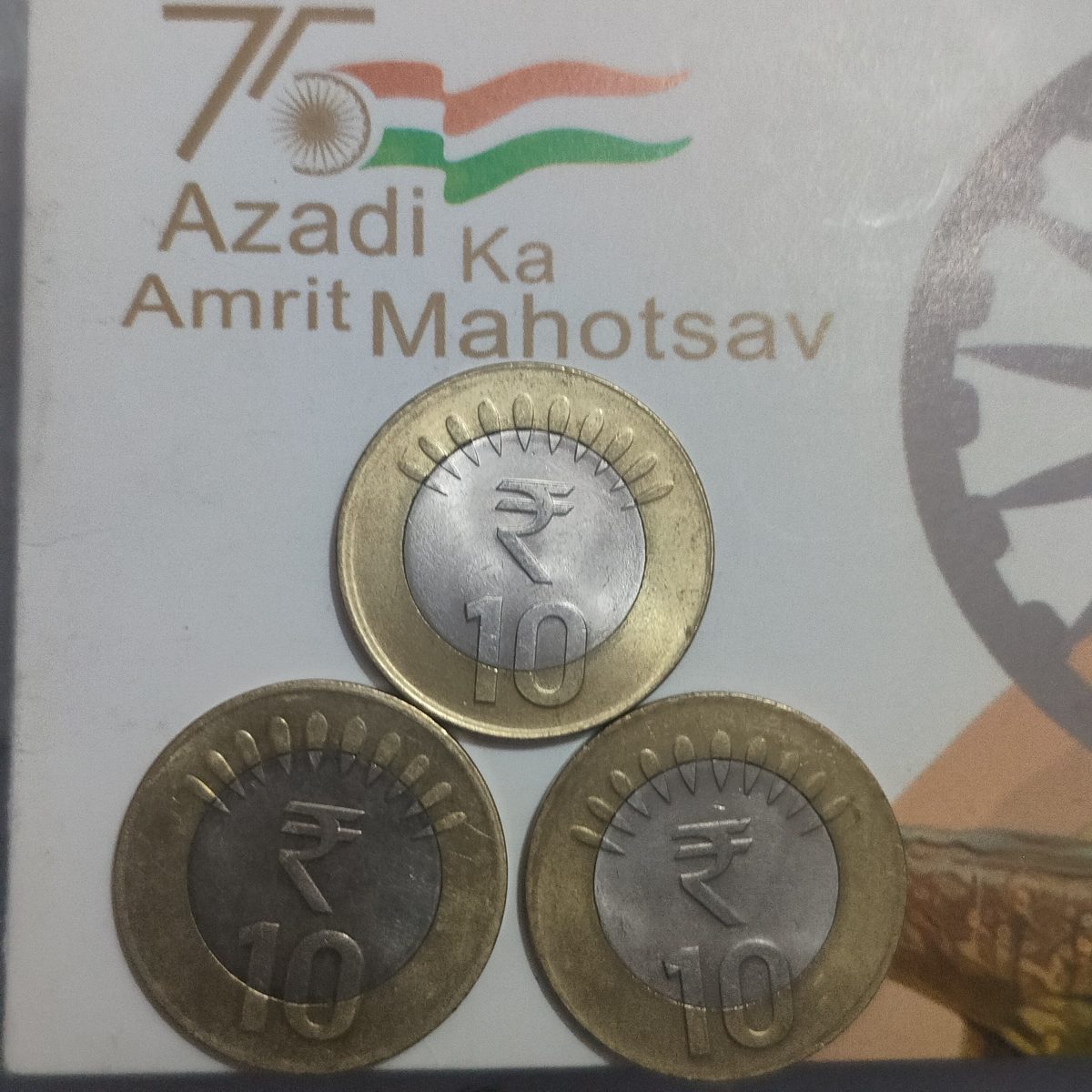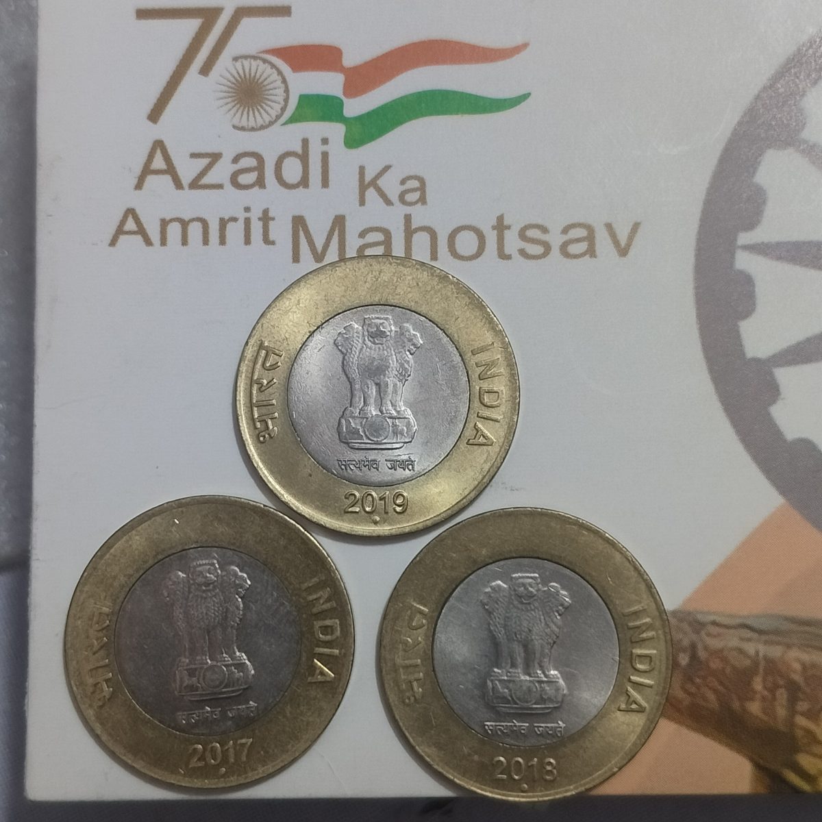 Three Coin Set of Ten Rupees 2017,18&2019 Bimetallic Coins of Republic India Coinage