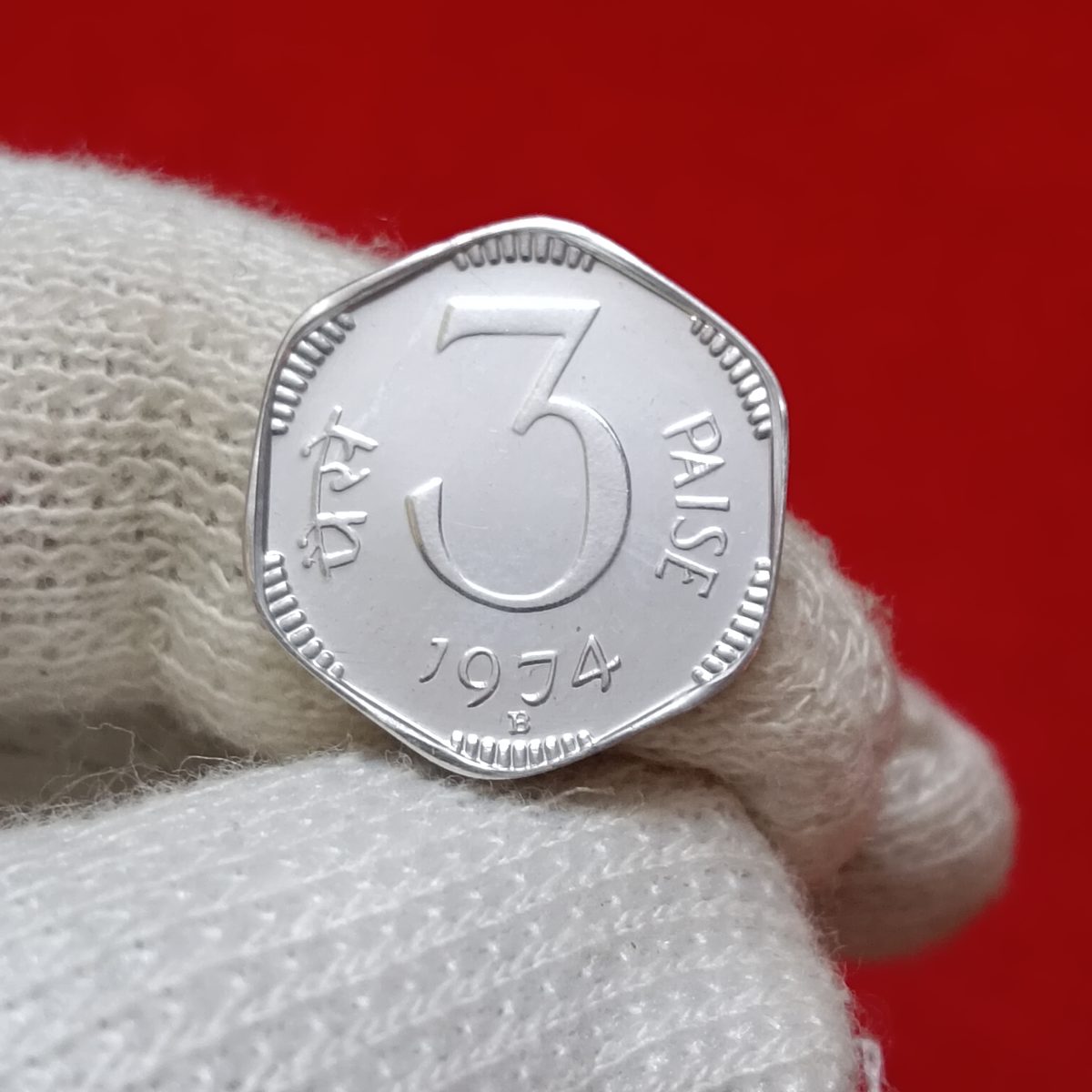 - Three Paise Proof Coin Set Coin 1974 B Mint Mark Gem Ultra Bunc Condition Coin