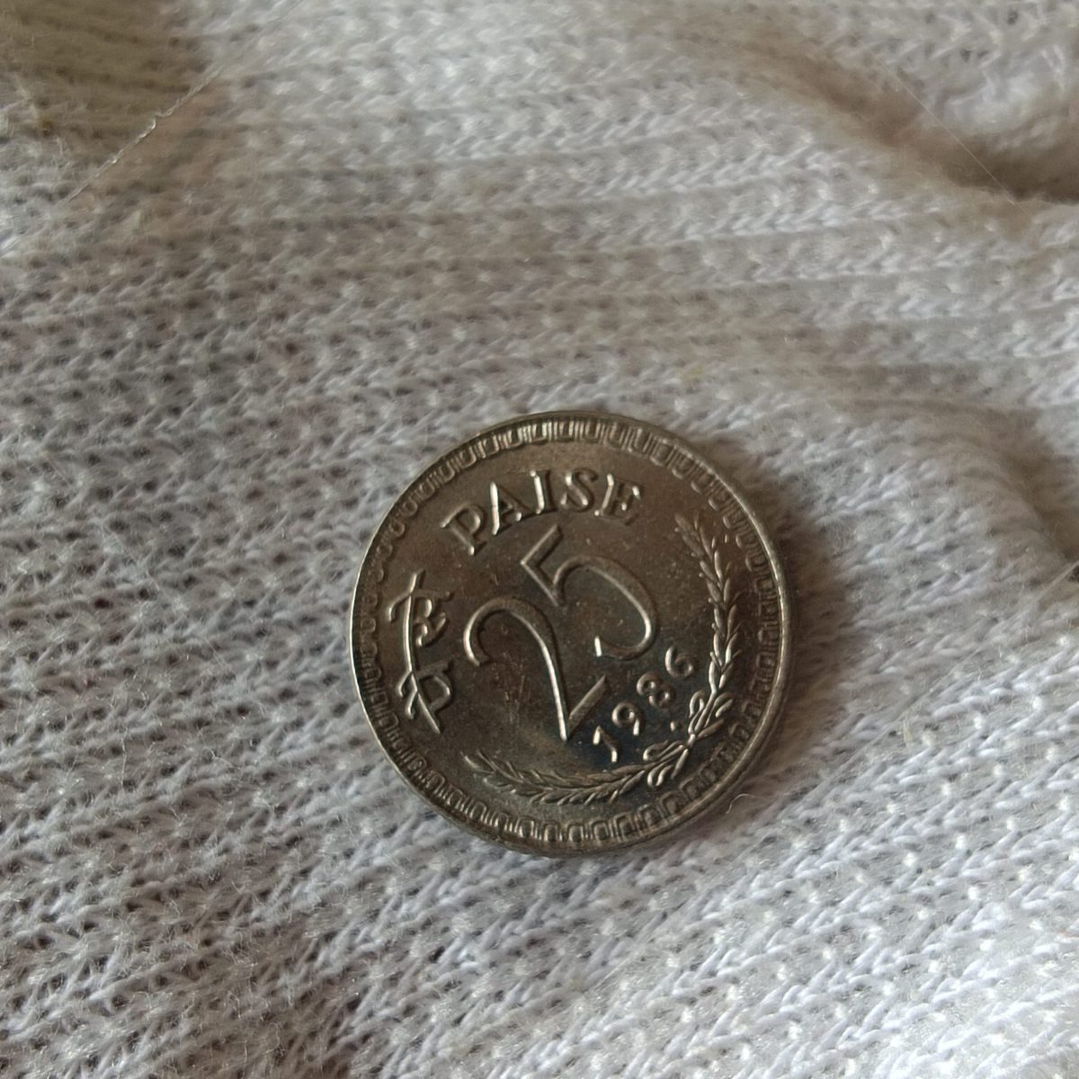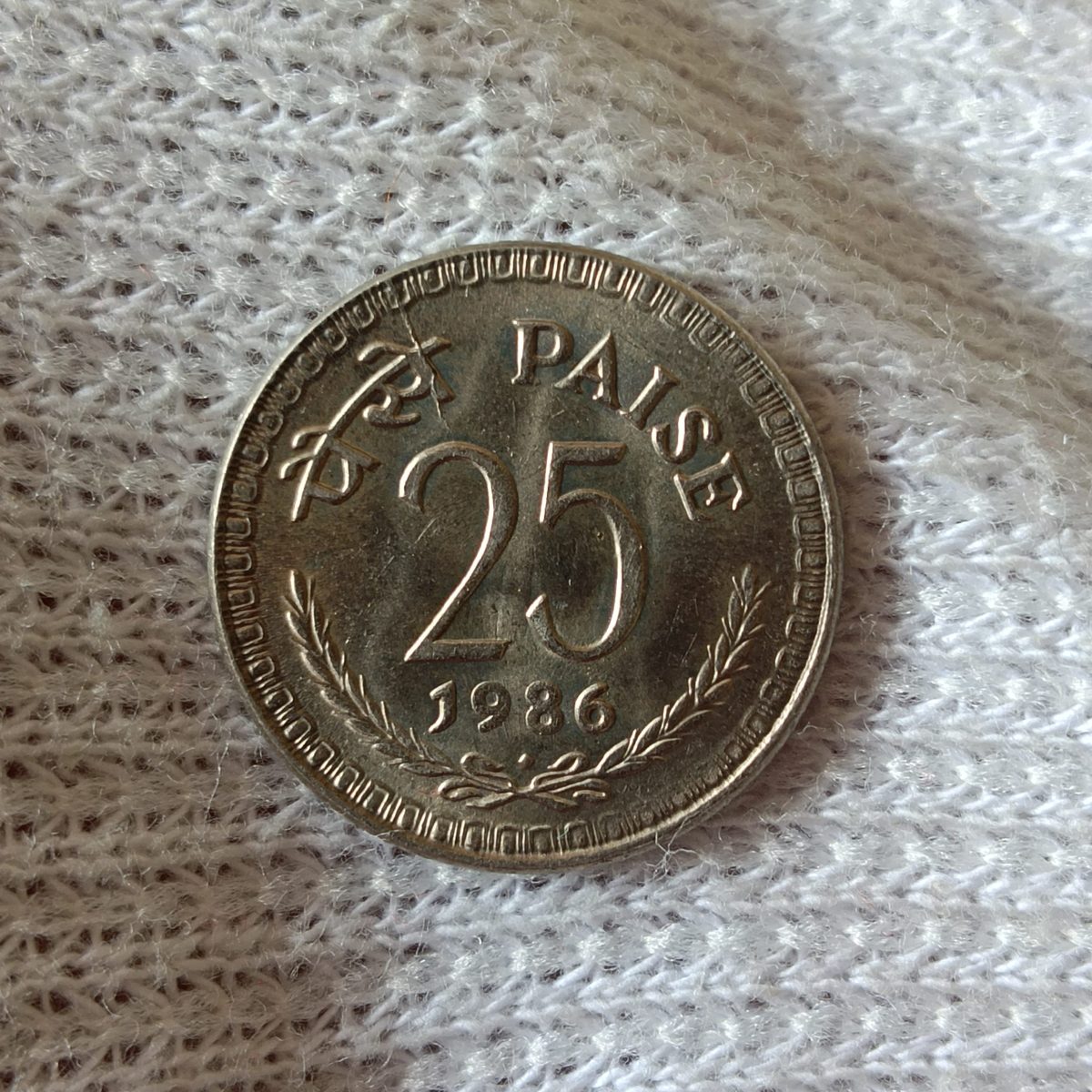 - Twenty Five Paise Copper Nickel 1986 Year Gem Bunc Condition Bombay Mint