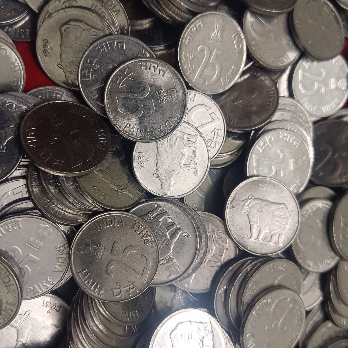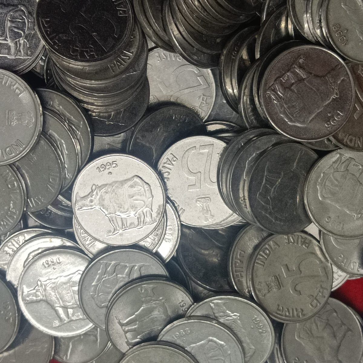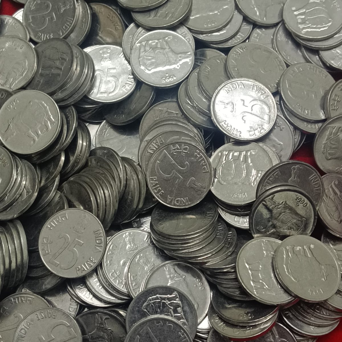 - Twenty Five Paise Rhino FSS 50 Pcs Given Mix Years Mix Mints Unc Condition Coins
