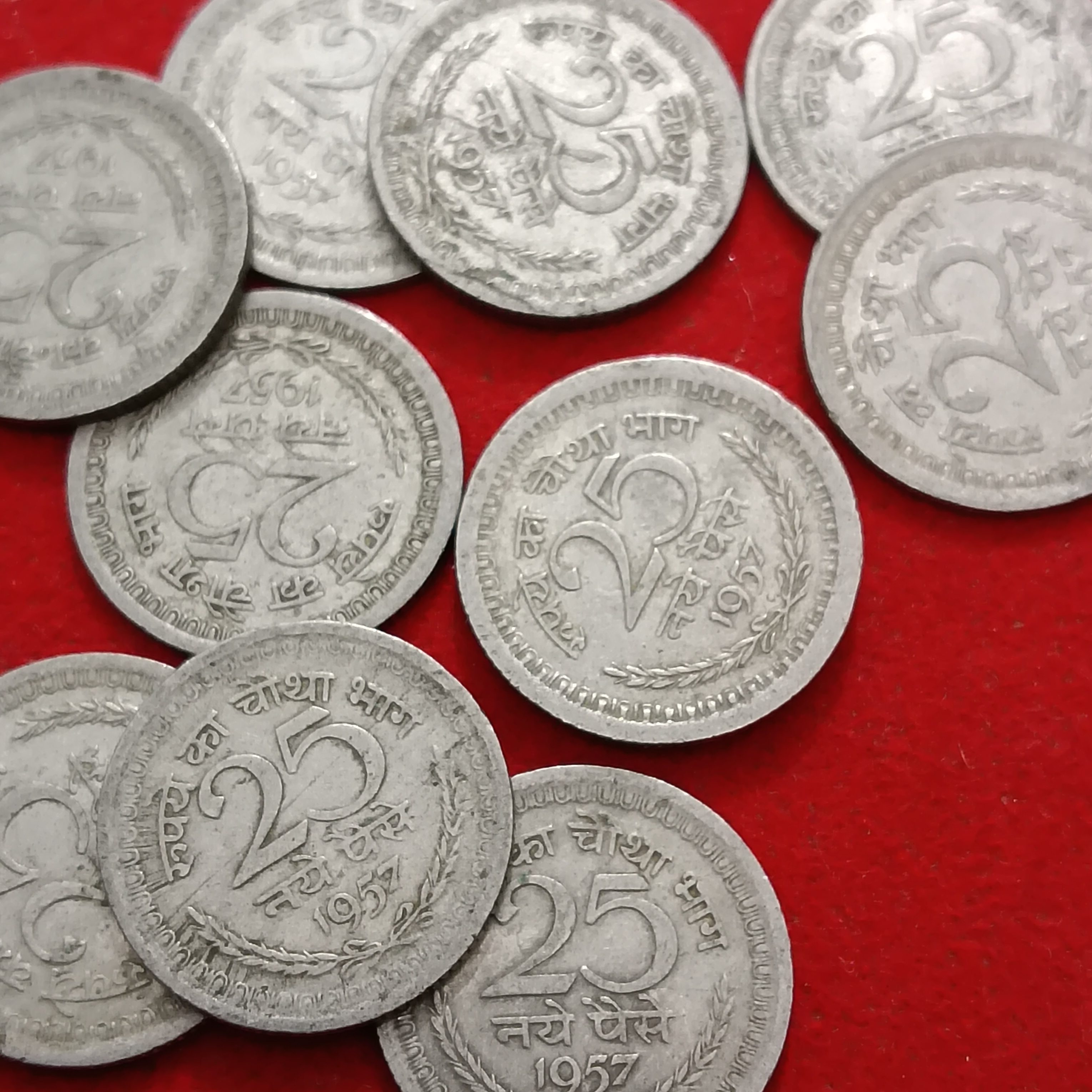 Twenty Five Paise Scare Coin 1957 Year Bombay Or Calcutta Mint 11 Pcs Given