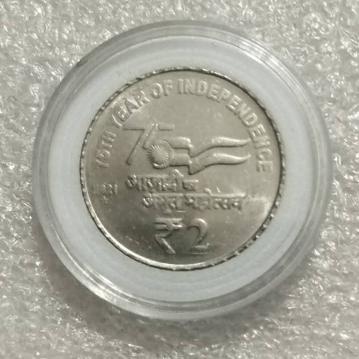 - Two Rs Ex Rare Coin 75 th Year of Independence Akam 2021 Year Hyderabad Mint Bunc Condition