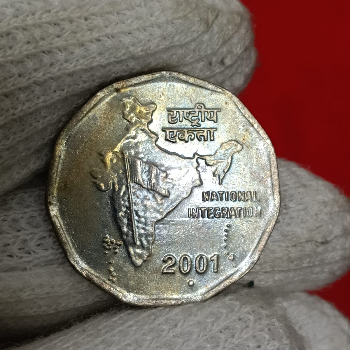 - Two Rs Scare Coin 2001 Year Noida Mint National integration Republic of India
