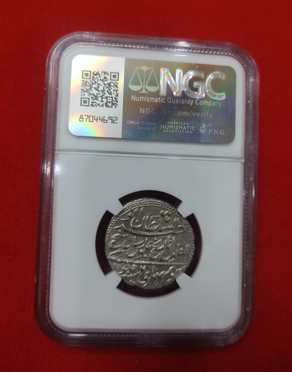 Tipu Sultan, known for his resistance against British colonialism, minted coins as a symbol of sovereignty and power. This particular silver rupee is a testament to his legacy and the turbulent times in which he reigned. Collectors and enthusiasts are drawn to this rare piece not only for its historical importance but also for its numismatic value. The NGC grading adds a layer of authenticity and credibility, making it a prized addition to any collection.
