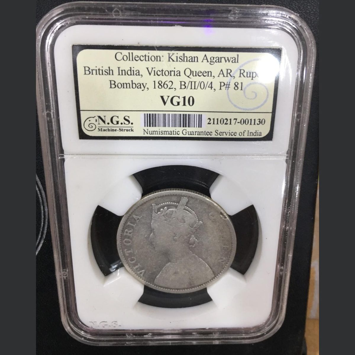 Victoria (4 Dot) one Ruppes silver British india Coin” With Grading india number one company. Rare