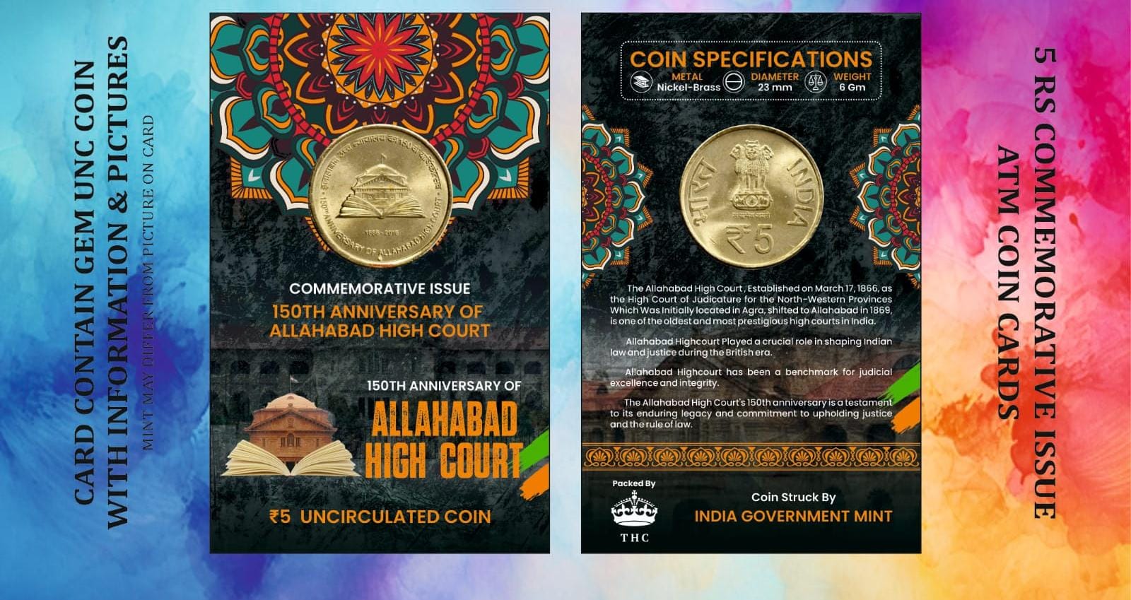 5 Rs. ALLAHABAD HIGH COURT rare Commemorative Coin Card Special Edition