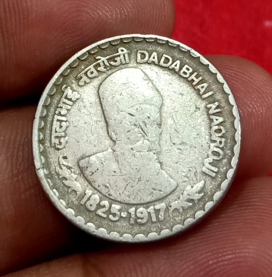 5 Rupees Cu/Ni COMMEMORATIVE Issue DADA BHAI NAROJI with Major LAMINATION Error SCARE Collectable Grade.