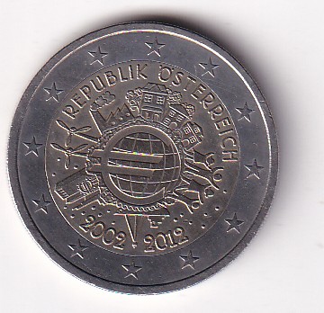 Austria 2 Euros 2012 (10 Years of Euro Cash) Rare Bimetallic Commemorative Coin#AA-158