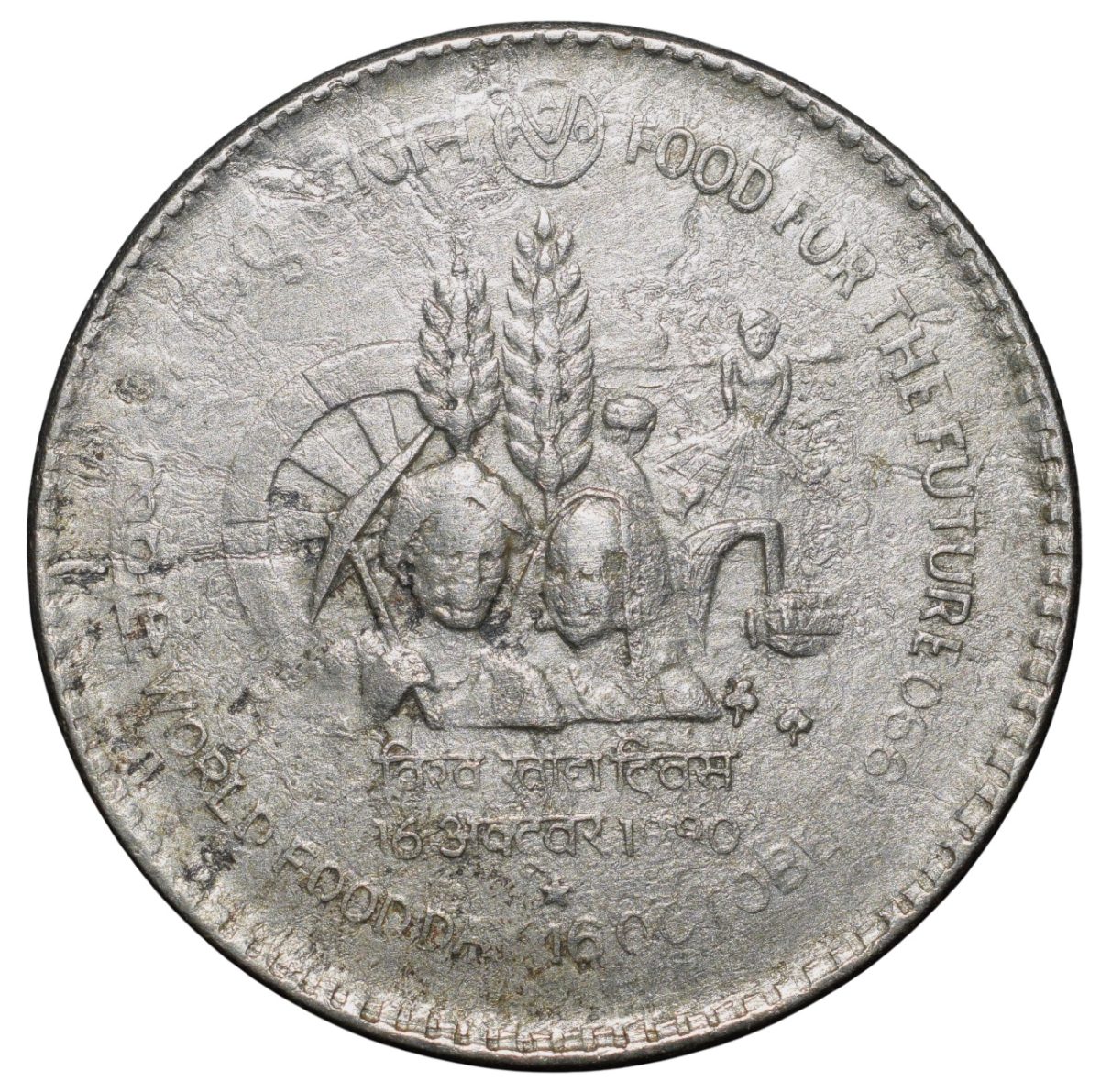 Copper-Nickel 1 Rupee of Republic India (AD 1990) World Food Day – Food for the Future of Hyderabad Mint Rare