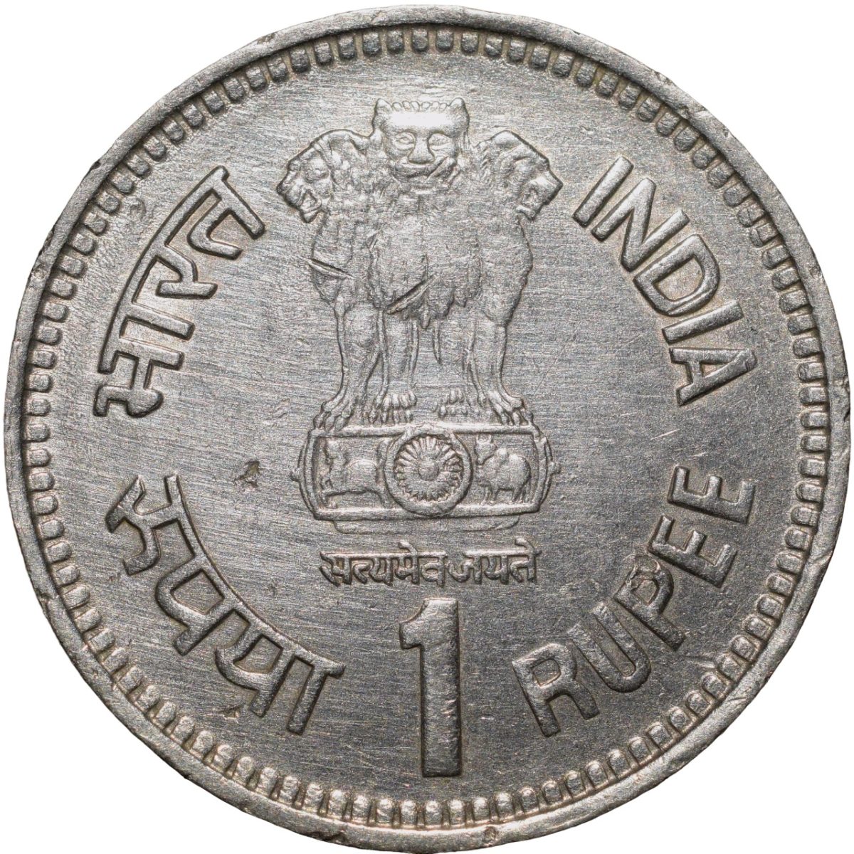 Copper-Nickel 1 Rupee of Republic India – Jawahar Lal Nehru (AD 1989) of Bombay Mint Security Edge