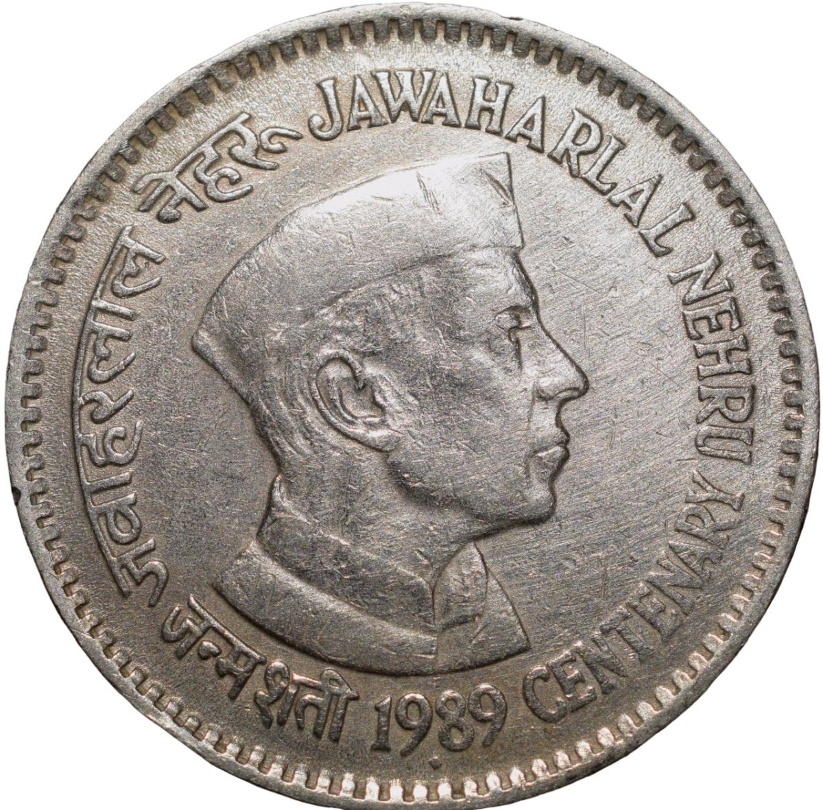 Republic India, Jawahar Lal Nehru, (AD 1989), Copper-Nickel 1 Rupee, Bombay Mint, Obv: Jawahar Lal Nehru facing Right in Centre, Inscription & Date around, Rev: Ashok Chakra & Denomination, 6 Gms, 26 mm, About Very Fine.