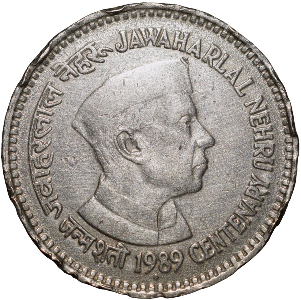 Republic India, Jawahar Lal Nehru, (AD 1989), Copper-Nickel 1 Rupee, Bombay Mint, Obv: Jawahar Lal Nehru facing Right in Centre, Inscription & Date around, Rev: Ashok Chakra & Denomination, 6 Gms, 26 mm, About Fine.
