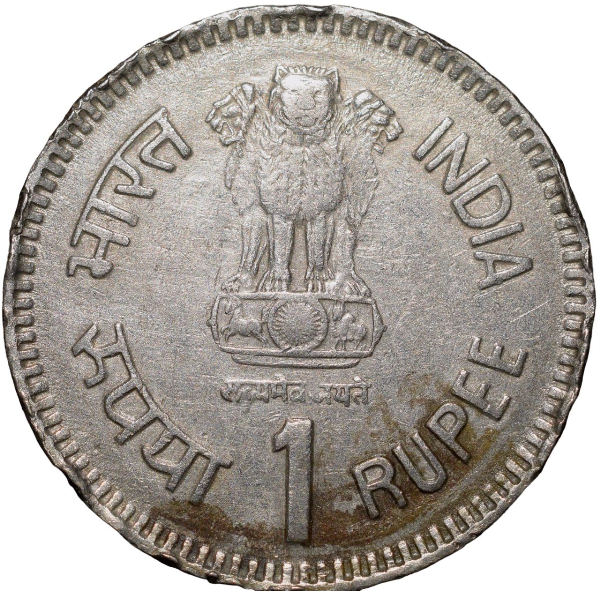 Copper-Nickel 1 Rupee of Republic India – Jawahar Lal Nehru (AD 1989) of Bombay Mint Security Edge