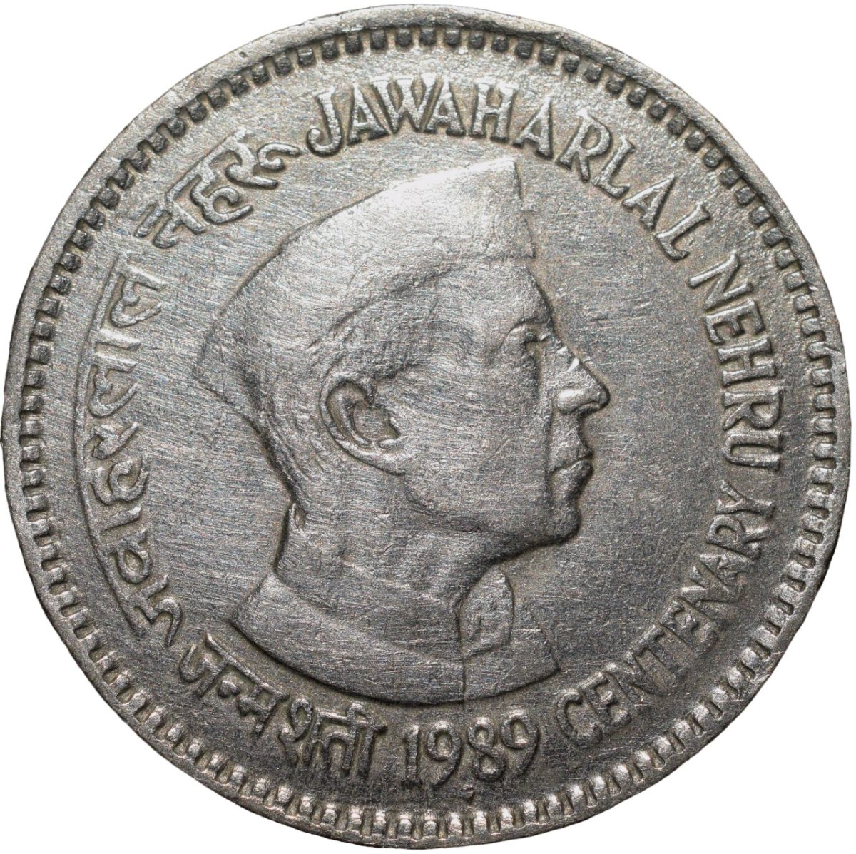 Republic India, Jawahar Lal Nehru, (AD 1989), Copper-Nickel 1 Rupee, Bombay Mint, Obv: Jawahar Lal Nehru facing Right in Centre, Inscription & Date around, Rev: Ashok Chakra & Denomination, 6 Gms, 26 mm, About Very Fine.