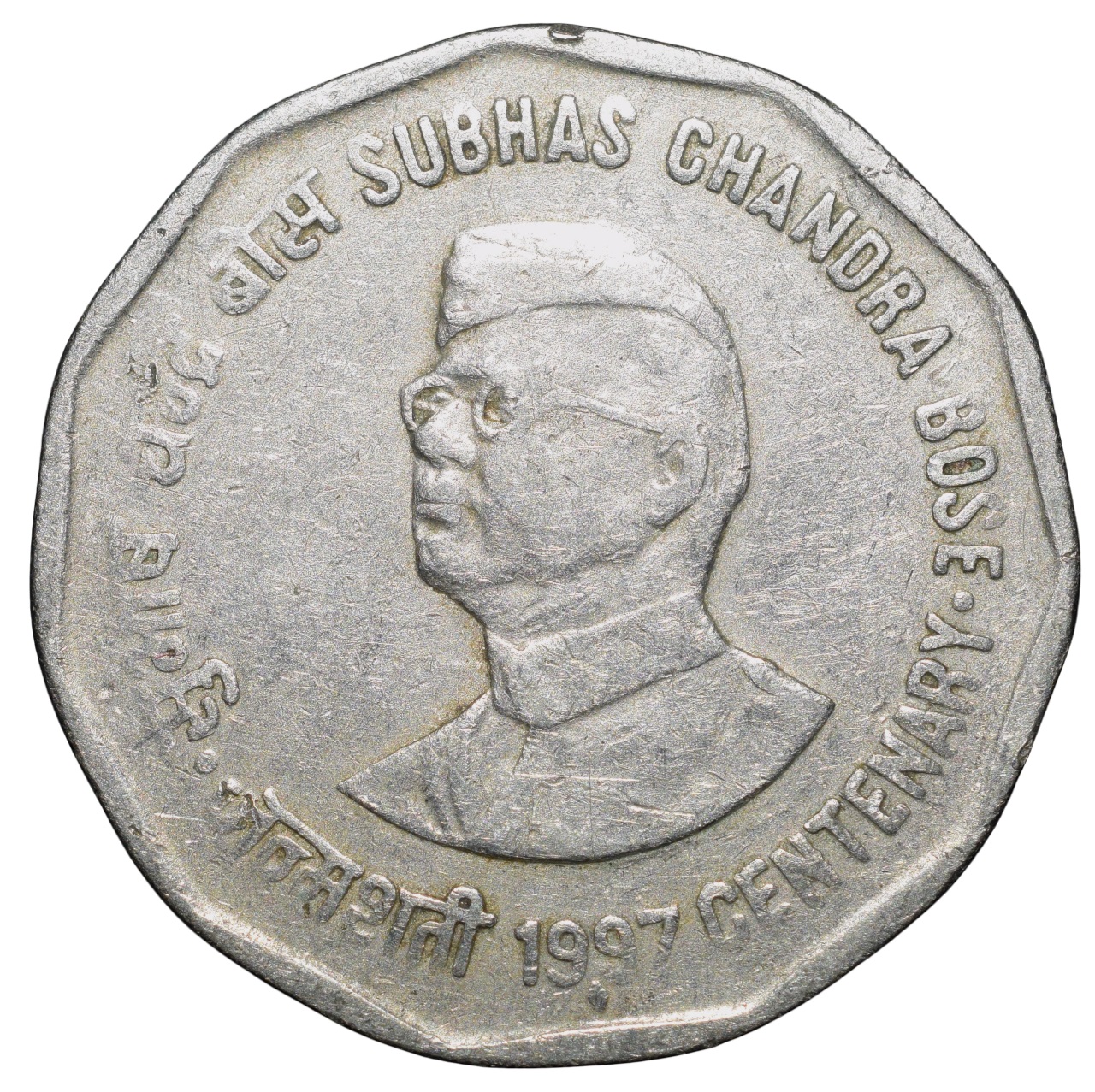 Copper-Nickel 2 Rupees of Republic India (AD 1997) Subhas Chandra Bose Bombay Mint