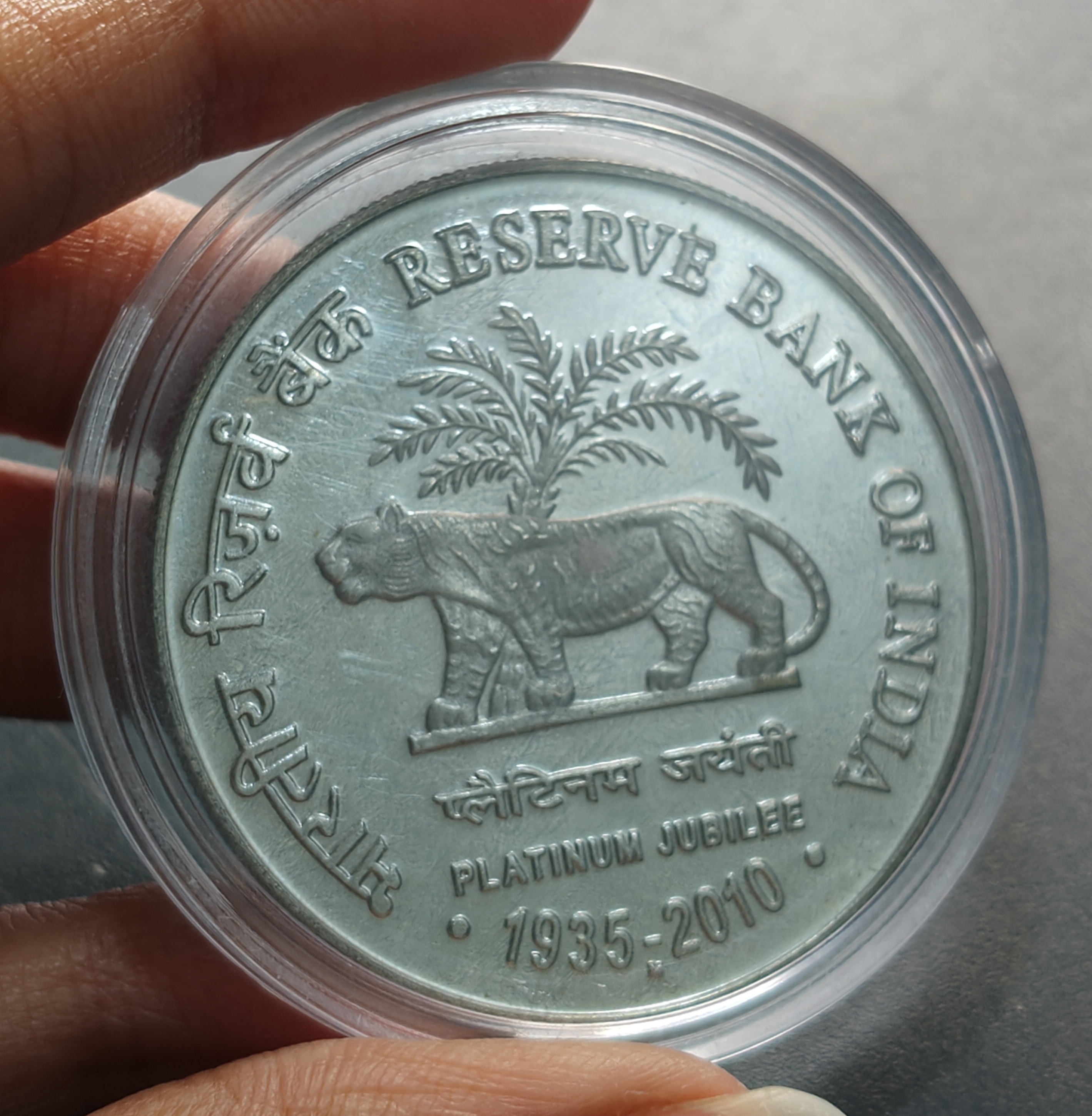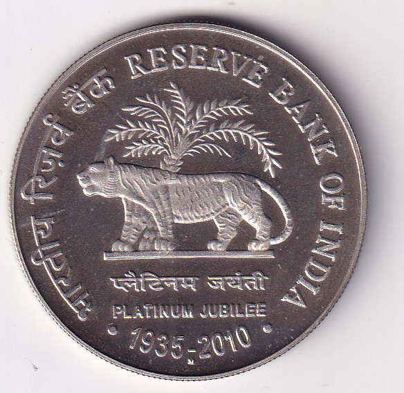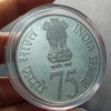 India 75 Rupees 2010 Platinum Jubilee of RBI Commemorative Issue rare SILVER (M) Mark Proof Coin With Capsule