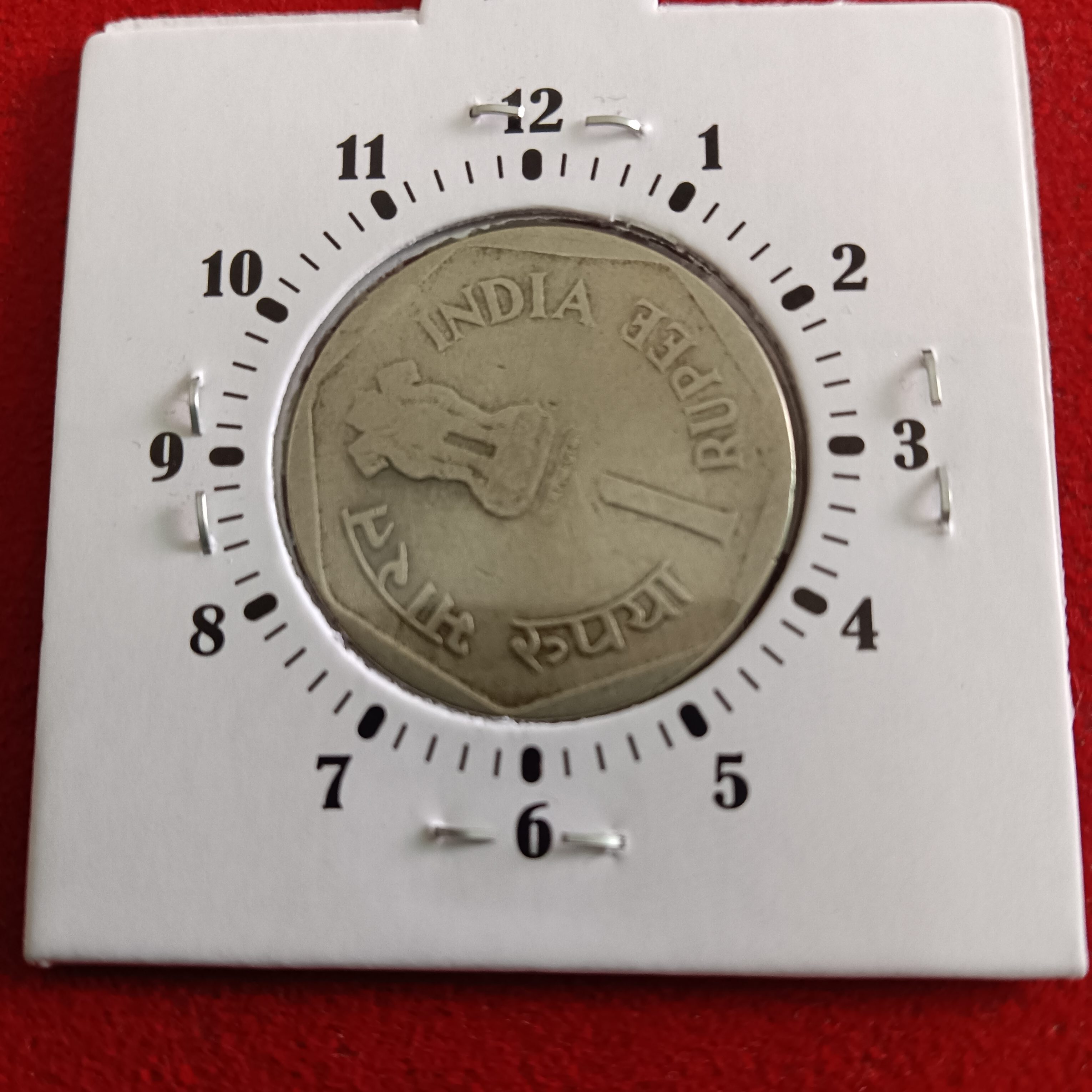 - One Rs Copper Nickel 9″o Clock Error Coin Care For The Girl Child SAARC 1990 Year Noida Mint RBI Mistake Coin