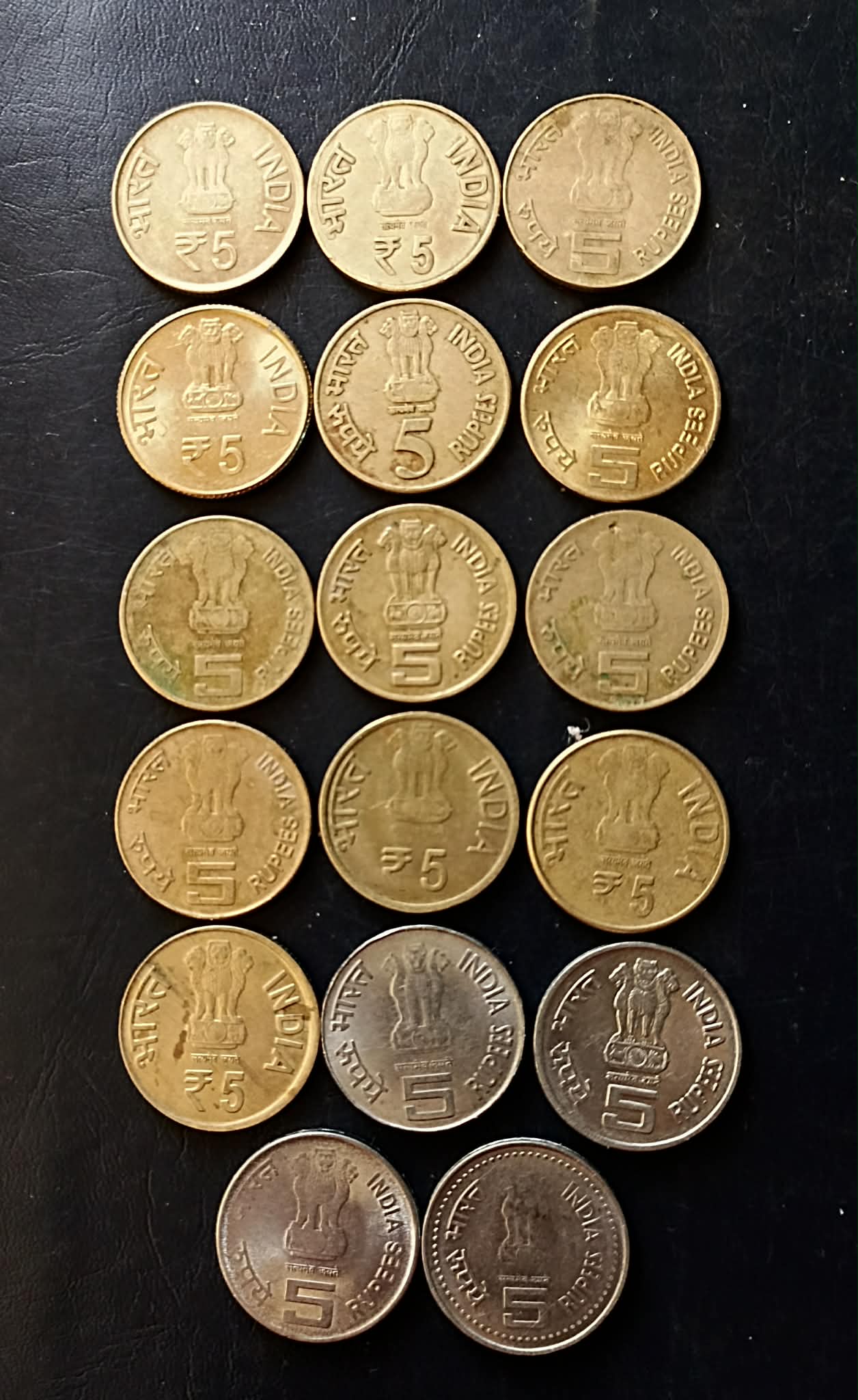 Republic India Set of 17 pieces of 17 different variety Denominaton 5₹ Same and similar set are available