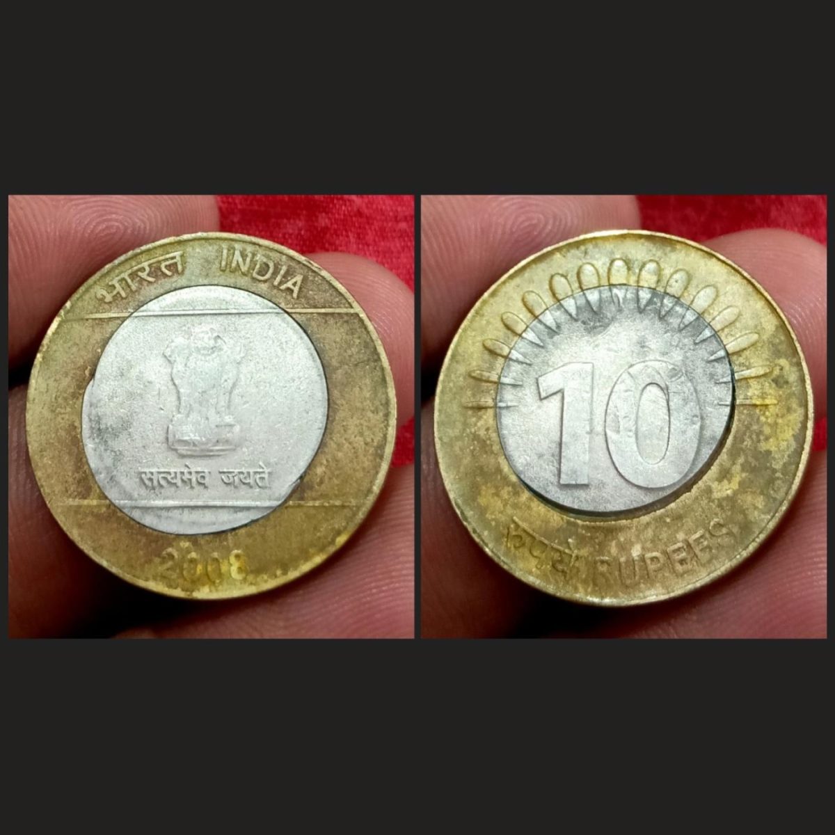 10 Rupees 2008 FIRST Series MISALIGNMENT INNER DISC OFF CENTER “MAD” Error **V.RARE** Collectable.