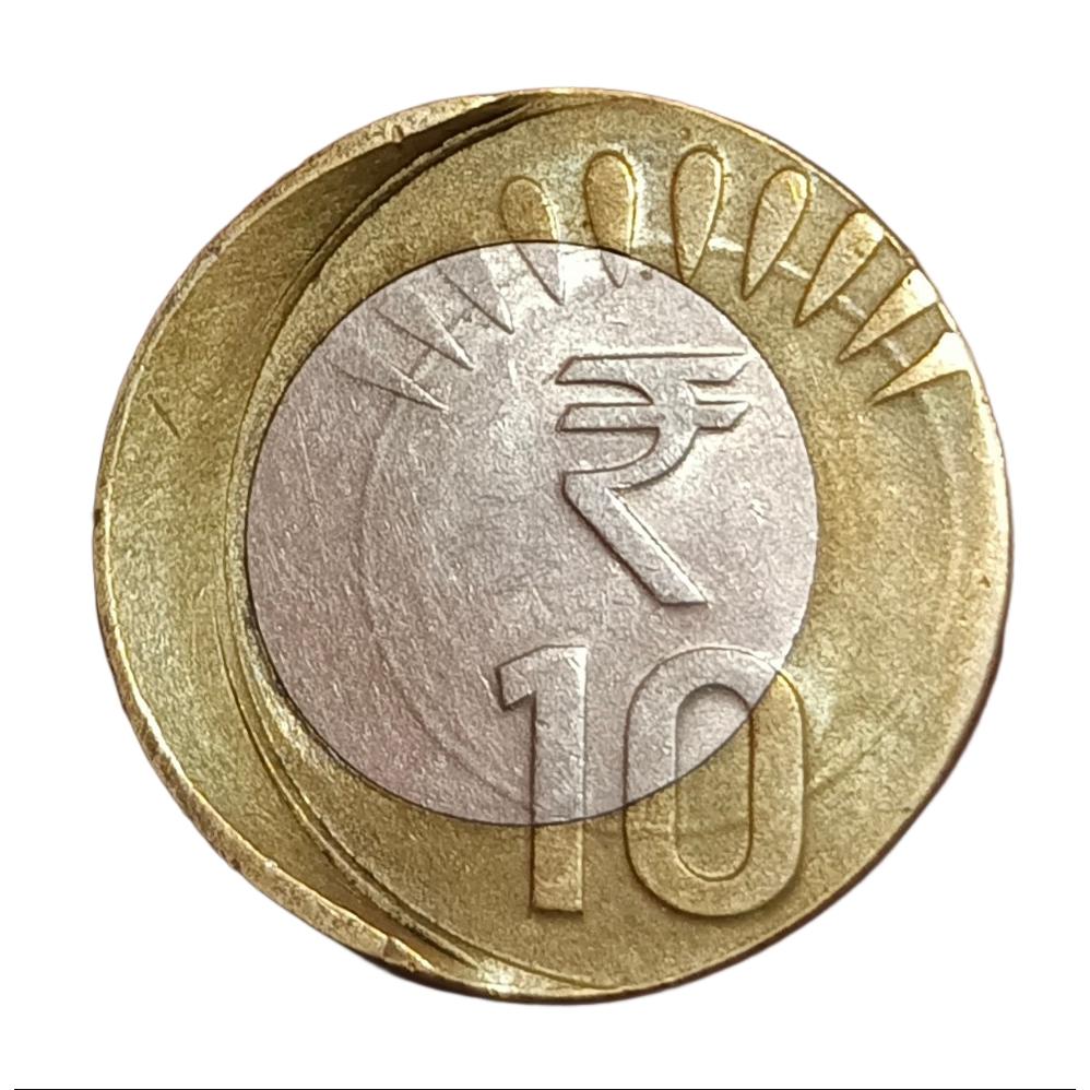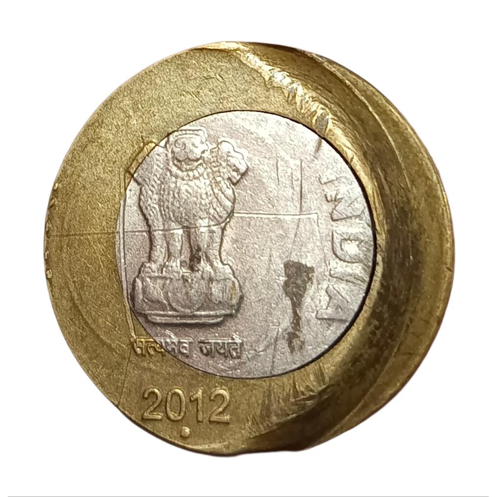10 Rupees Bi-Metal Year 2012 Bombay Mint Major DIE CAPPED Error in Collectable Grade.