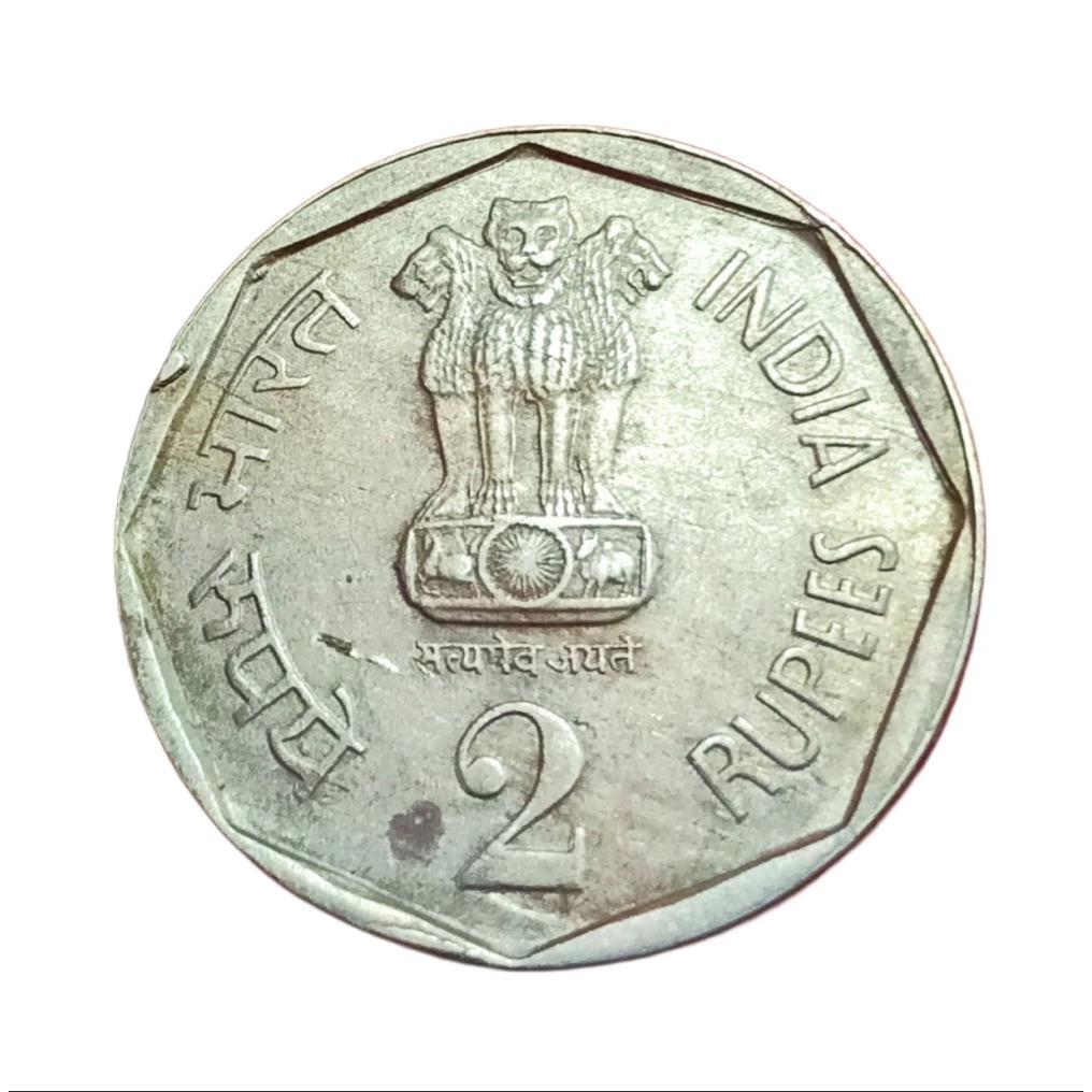 2 Rupees Cu/Ni Big DABBU Issue BROCKAGE/LAKHI Error V.RARE AUNC Grade.