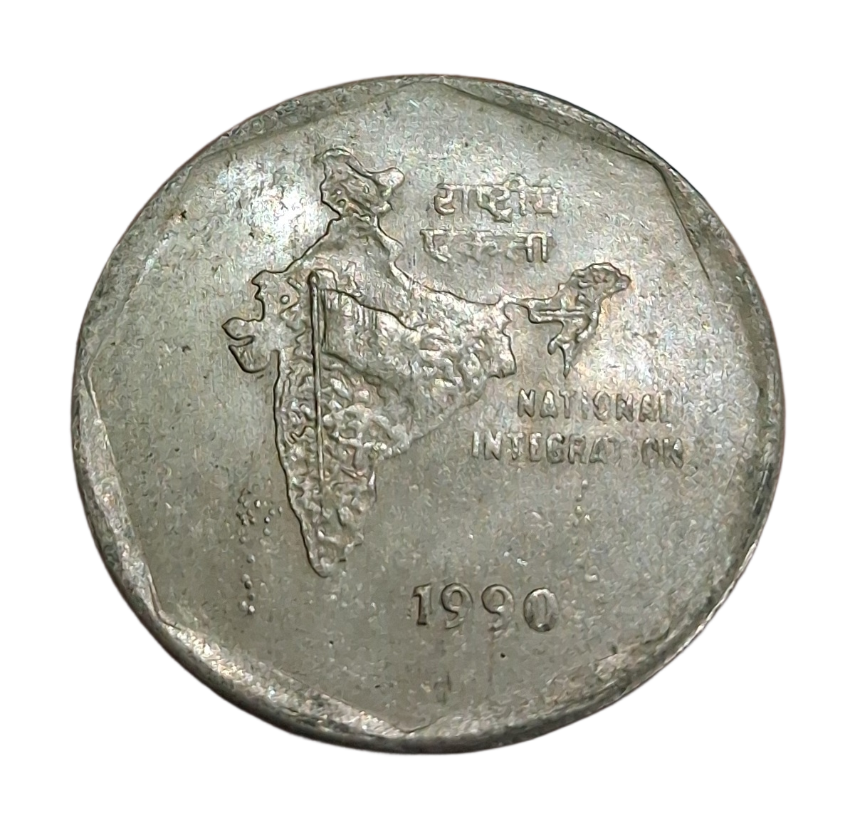 2 Rupees Cu/Ni Big Dabbu Issue Year 1990 Partial Reeded Partial Plain Edge Variety in UNC Grade.