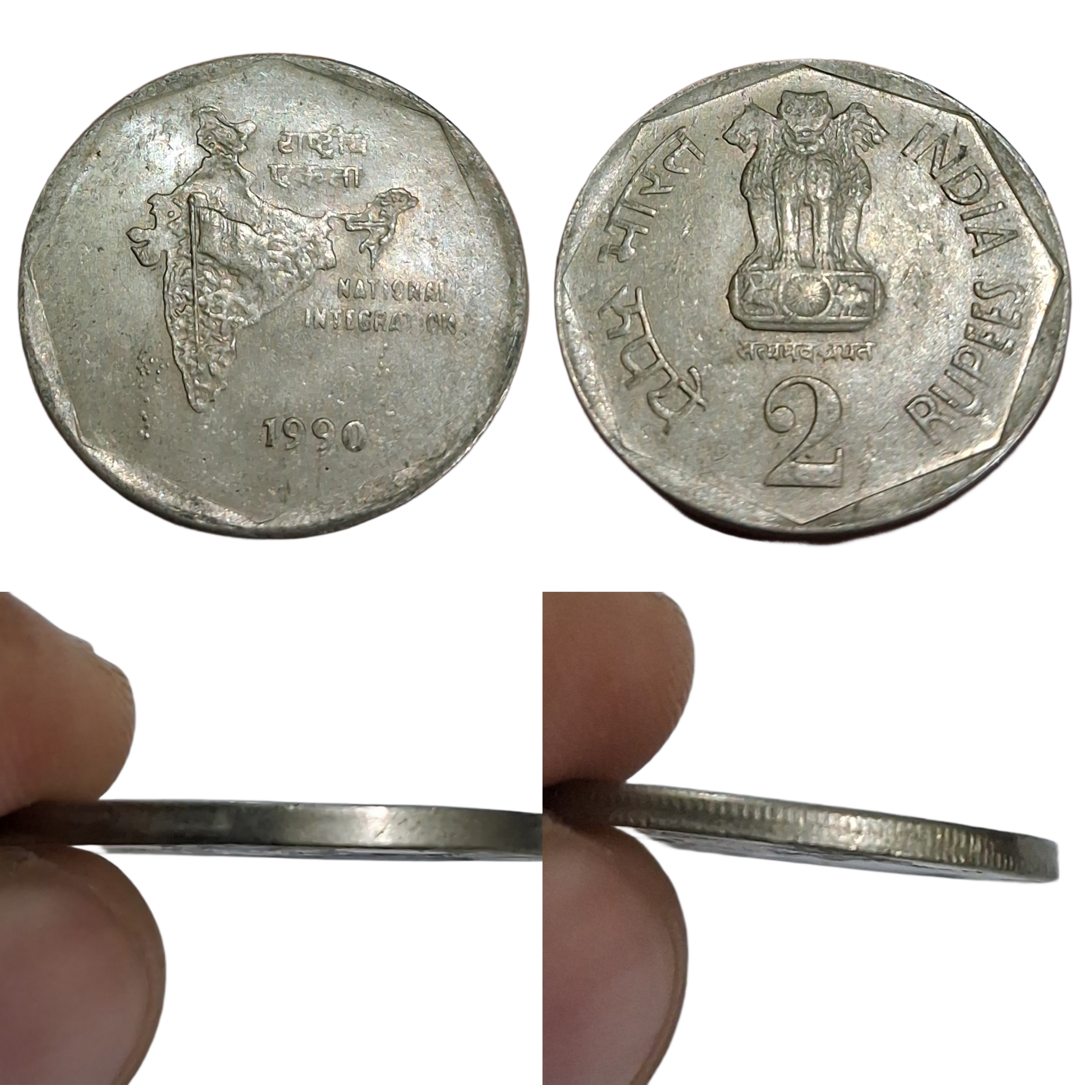 ✨ Rare 1990 2 Rupees Cu/Ni Big Dabbu coin
