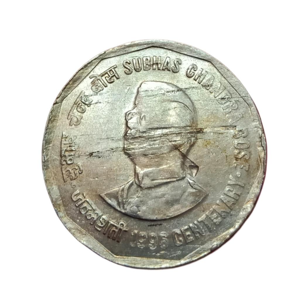 2 Rupees Cu/Ni COMMEMORATIVE Issue “Error Date” 1996 NETAJI Subhash Chandra Bose with LAMINATION Error **VERY RARE** High Collectable Grade.