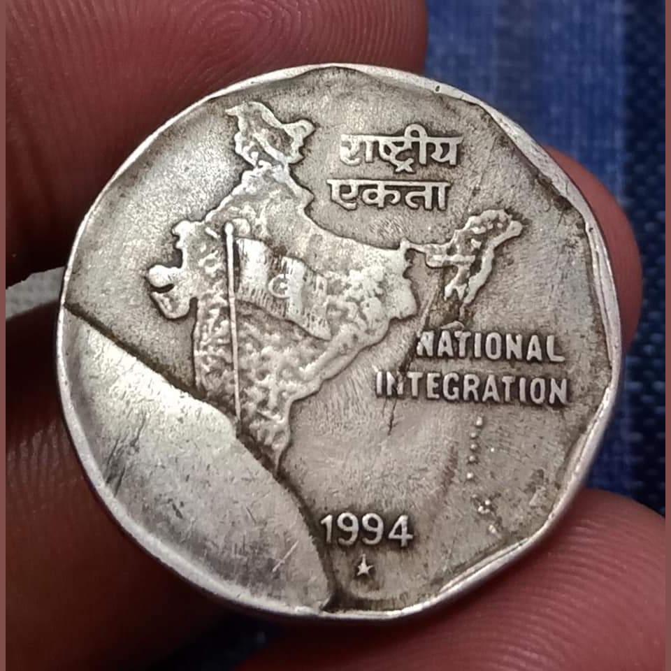 2 Rupees Cu/Ni Year 1994 Hyderabad Mint MASSIVE DIE CUD Error **RARE** Collectable Grade.