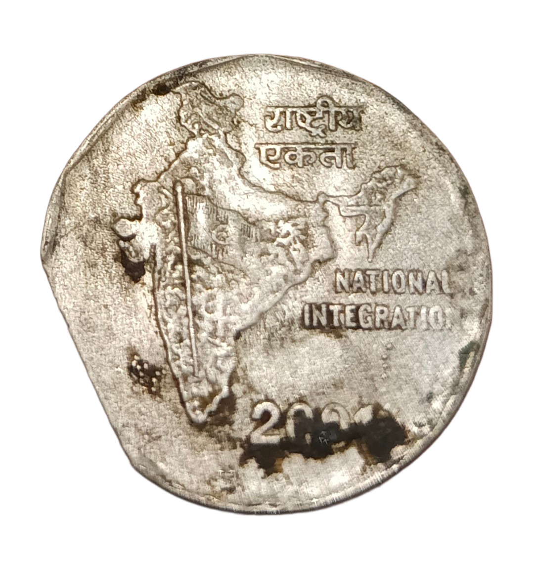 2 Rupees Cu/Ni Year 2000 STRAIGHT CLIP CUT Error Collectable Grade.