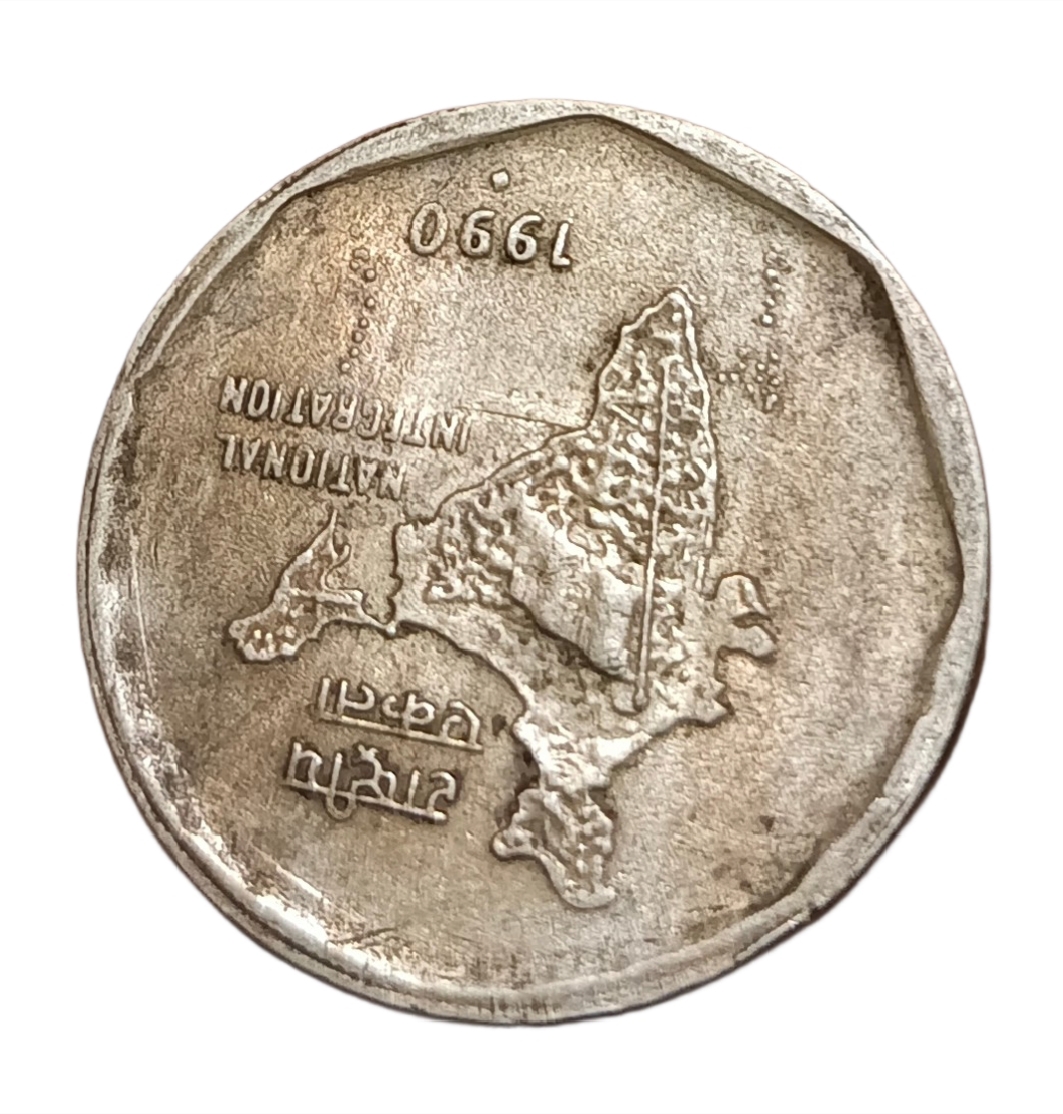 Transport yourself back to 1990 with this extraordinary 2 Rupees Copper-Nickel coin from the Bombay Mint (Mumbai). What sets this piece apart is its ALMOST INVERTED AXIS 6:30° CLOCK ROTATION Error, making it a true rarity for collectors. This special issue, known as the Big DABBU, showcases impeccable craftsmanship and attention to detail.