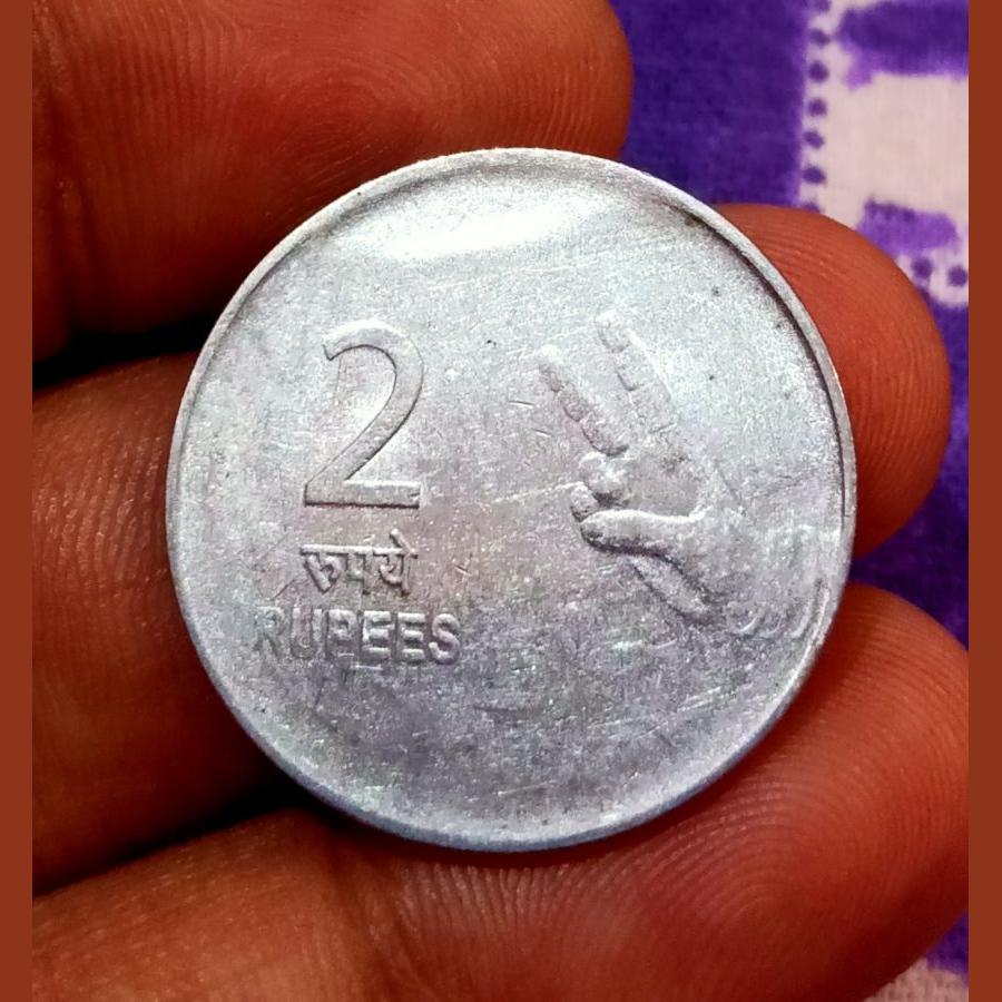 2 Rupees Old Fss Year 2009 MUDRA Series MASSIVE DIE CUD or EXTRA METAL Error **SCARE** High Collectable Grade.