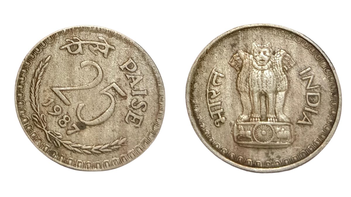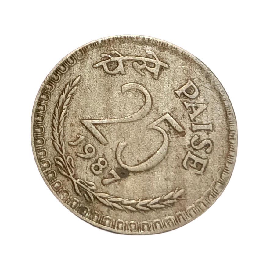 25 Paisa Cu/Ni Year 1987 CLOCK ROTATION Error Collectable Grade.