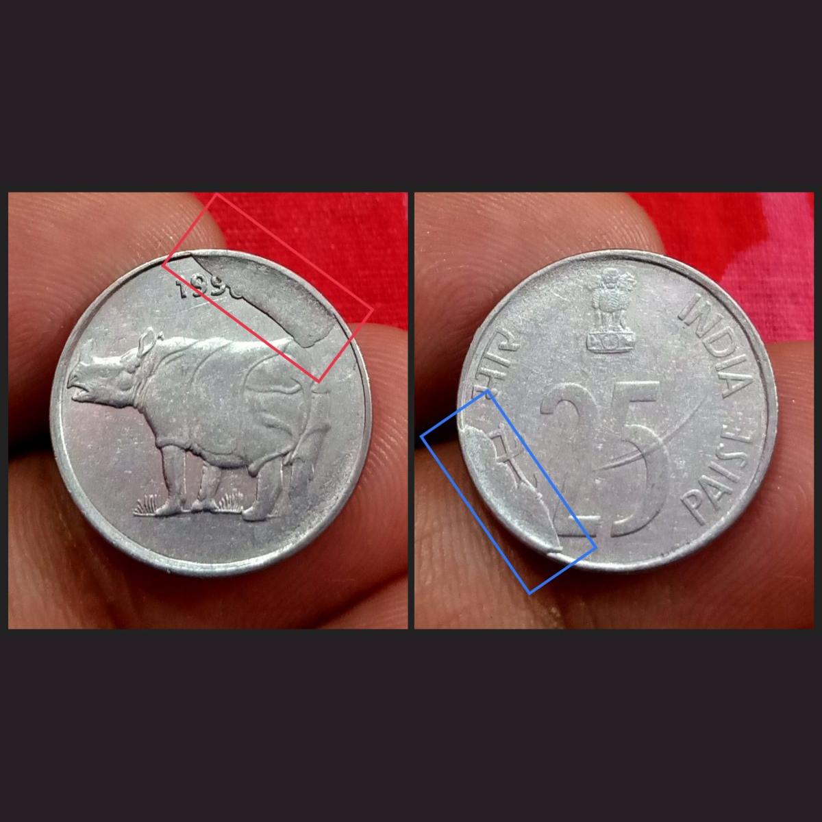 25 Paisa Fss RHINO 🦏 Issue BOTH SIDES DIE CUD or EXTRA METAL Error RARE Collectable Grade.