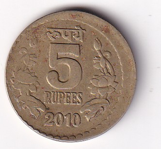 5 Rupees 2010 shifting Error Coin#Z-28