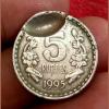 5 Rupees Cu/Ni 1995 Vertical MISALIGNED DIE SHIFT or MAD Error in Collectable Grade.