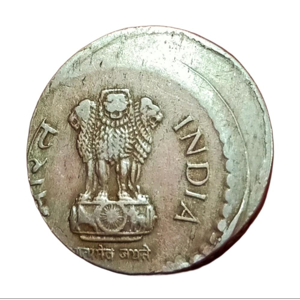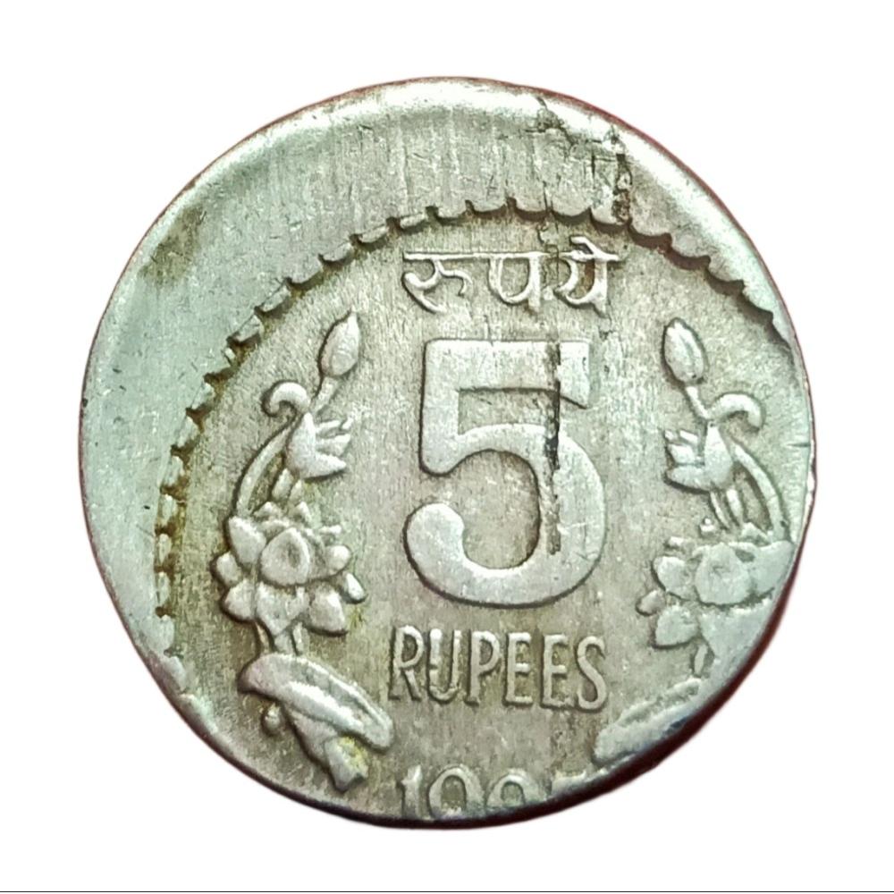 5 Rupees Cu/Ni Unknown Year/Mint VERTICAL OFF CENTER Error in Collectable Grade.