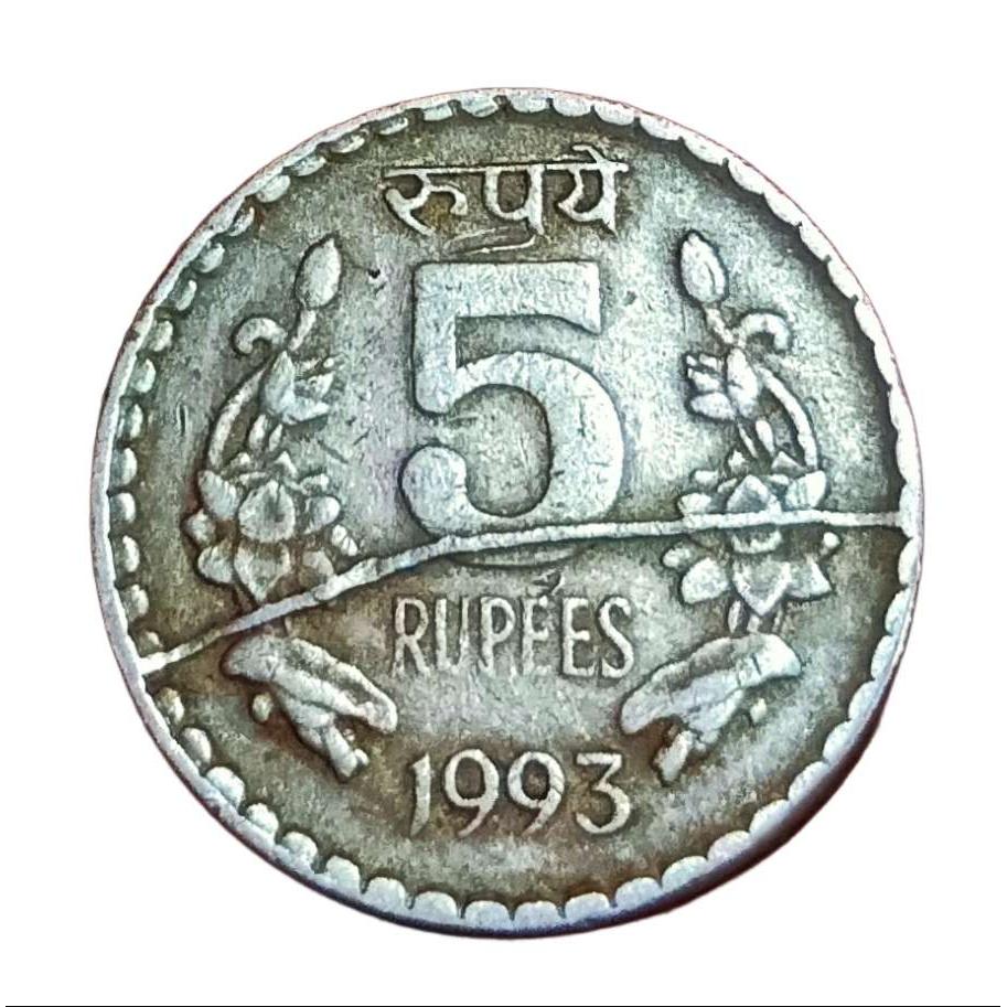 5 Rupees Cu/Ni Year 1993 DIE BREAK Error in Collectable Grade.
