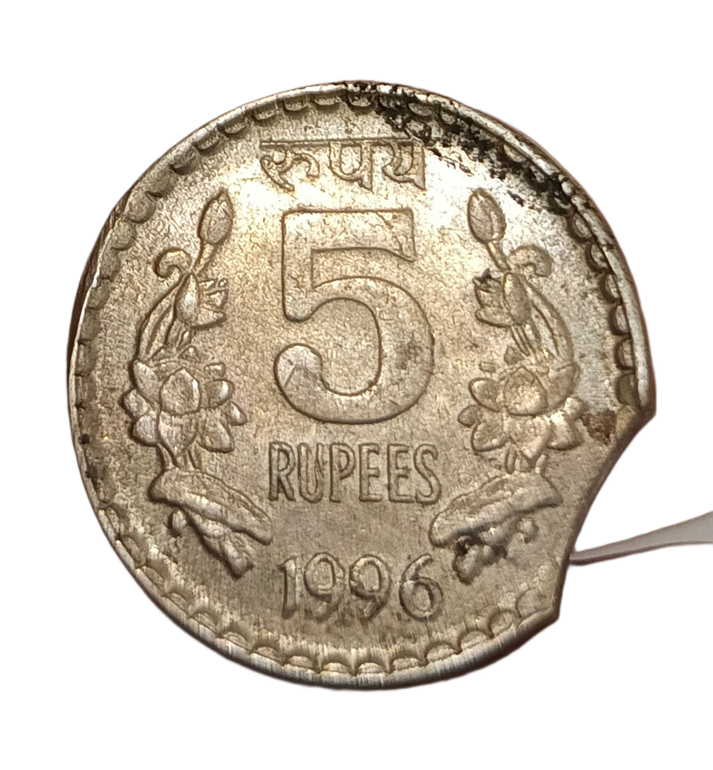 5 Rupees Cu/Ni Year 1996 CLIP CUT Error with REEDED EDGE High Collectable Grade.