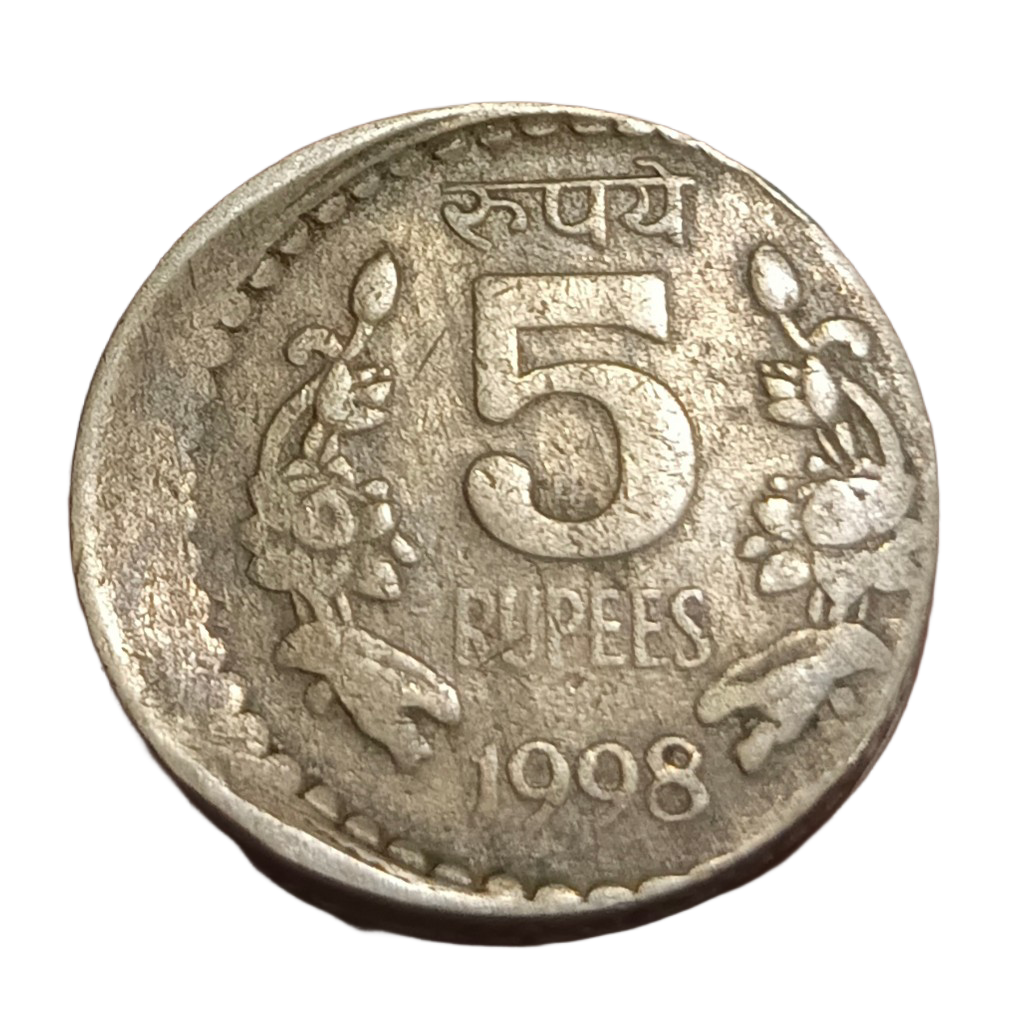 5 Rupees Cu/Ni Year 1998 Calcutta Mint OFF CENTRE Error Collectable Grade.