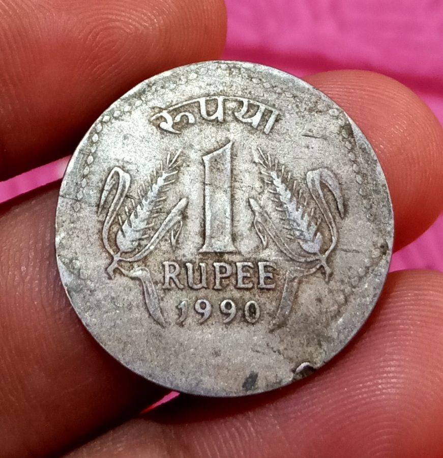 One Rupee Cu/Ni 1990 Major LAMINATION Error SCARE Collectable Grade.