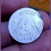 One Rupee Old Fss Corn 🌽 Theme Year 1998 WRONG PLANCHET Error Struck on 50 Paisa Fss Flan with Minor Edge Double Strikes **RARE** Used Condition.