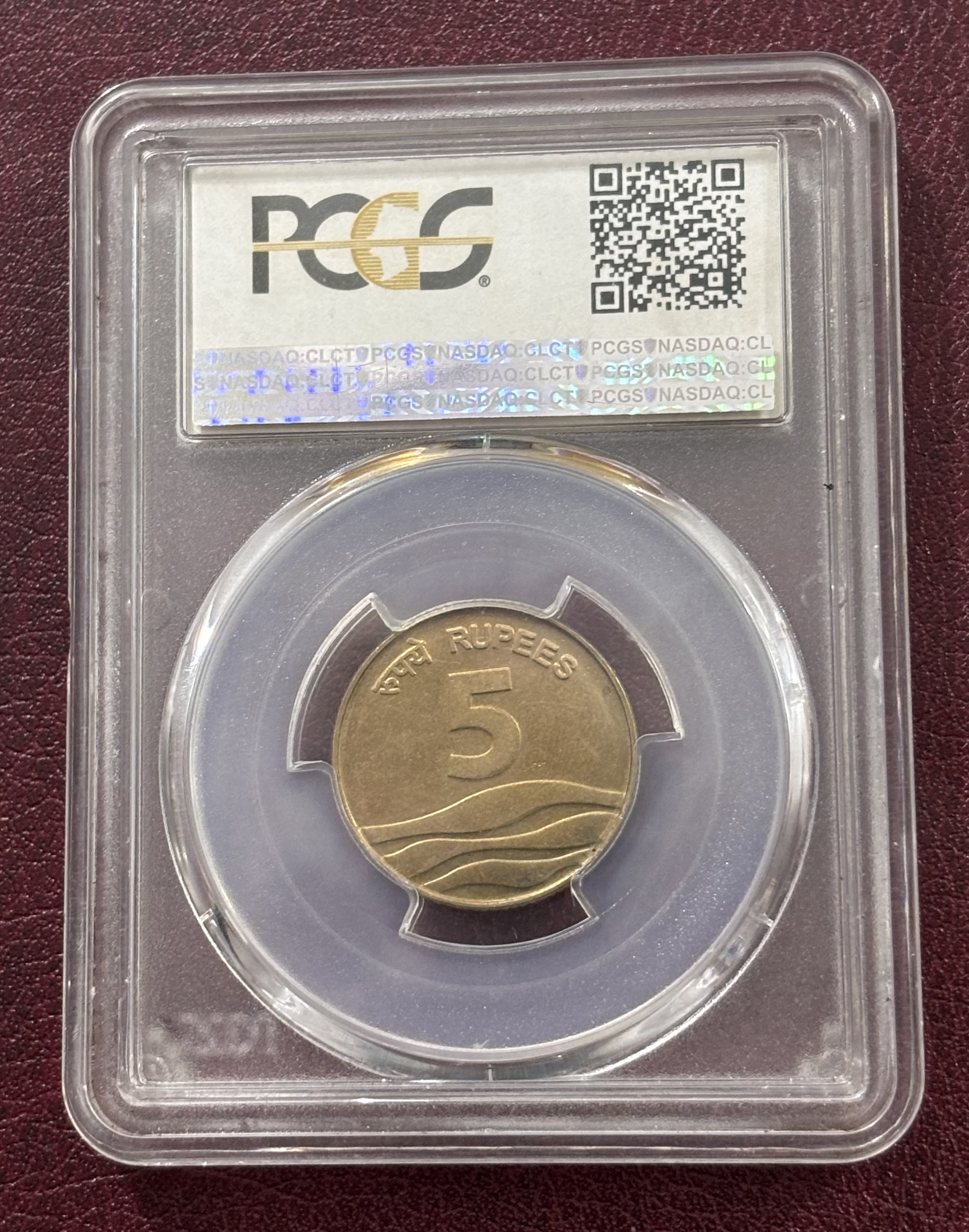 PCGS Graded 5 Rupees 2008 Nickel Brass Oms Ex Rare