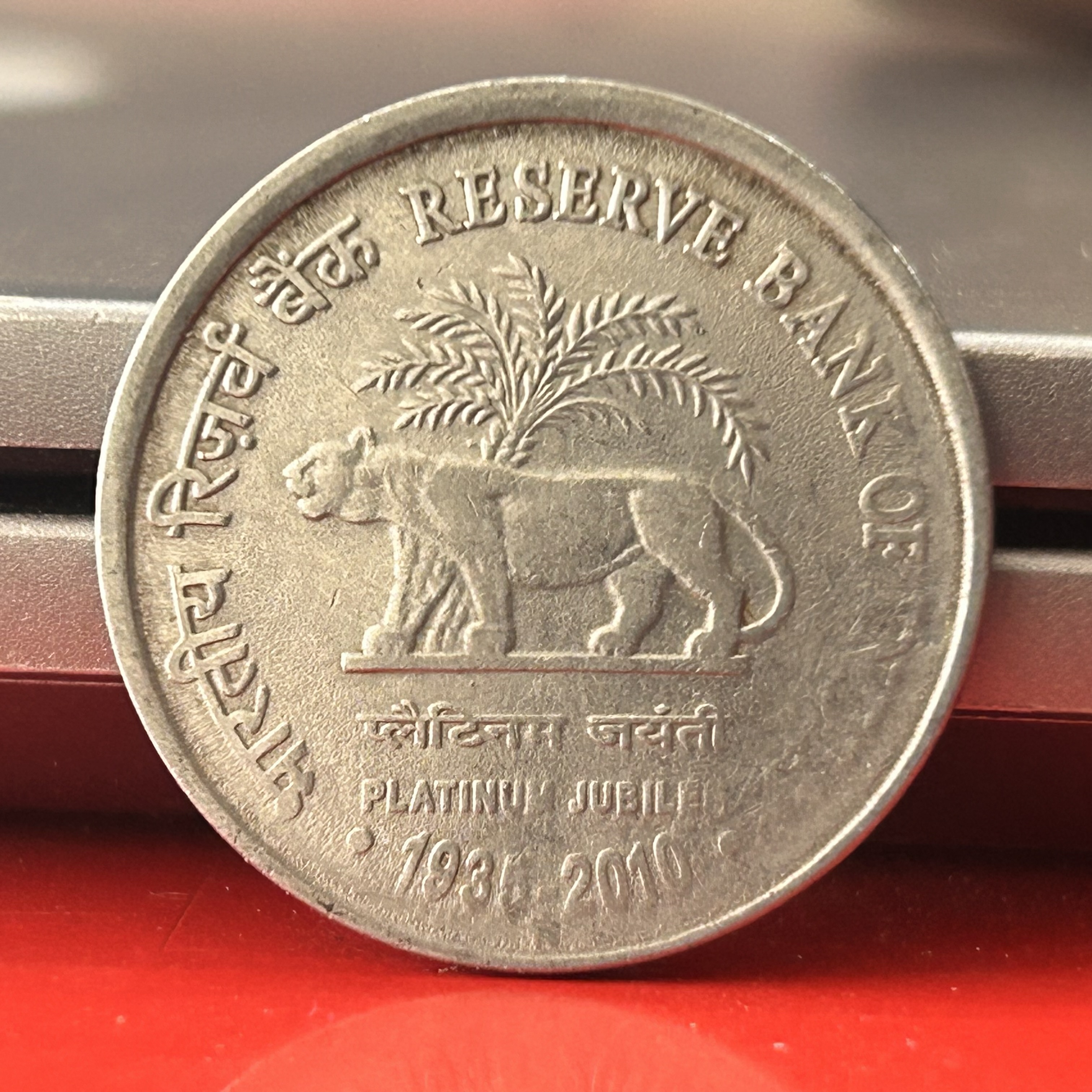 Shifting Error One Rupee Reserve Bank of India 1935-2010 Platinum Jubilee Hyderabad Mint Commemorative Coin
