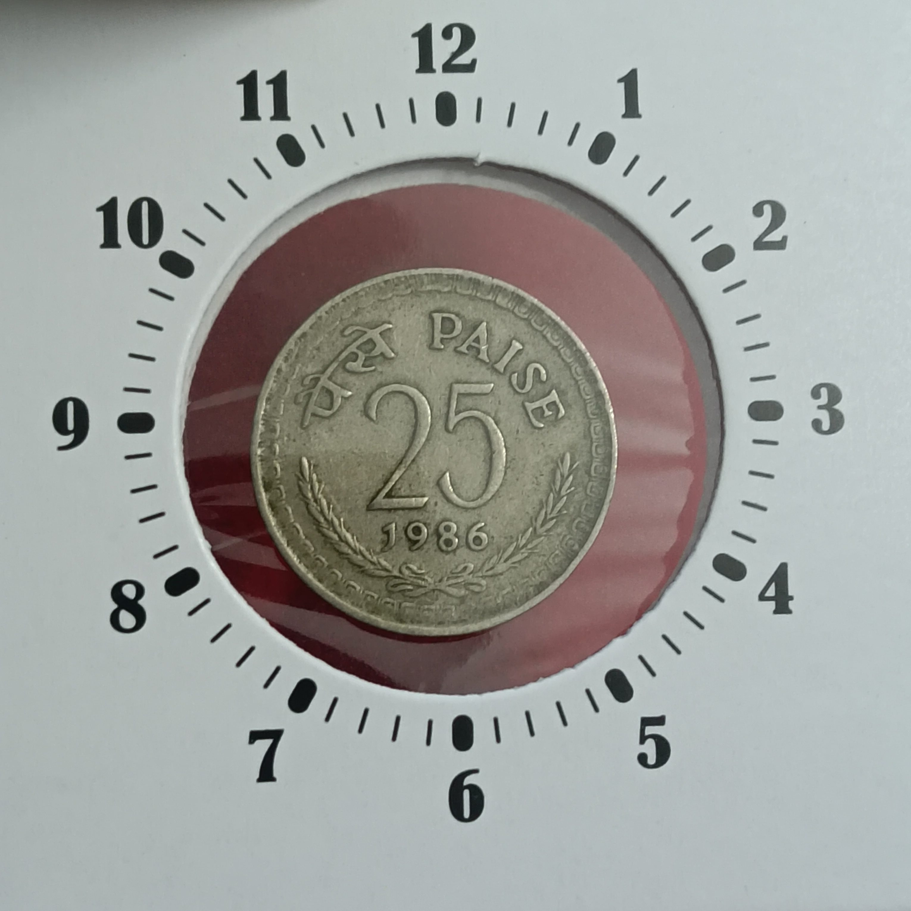 - Twenty Five Paise Copper Nickel 3″o Clock Error Coin 1986 Year Calcutta Mint RBI Mistake Coin